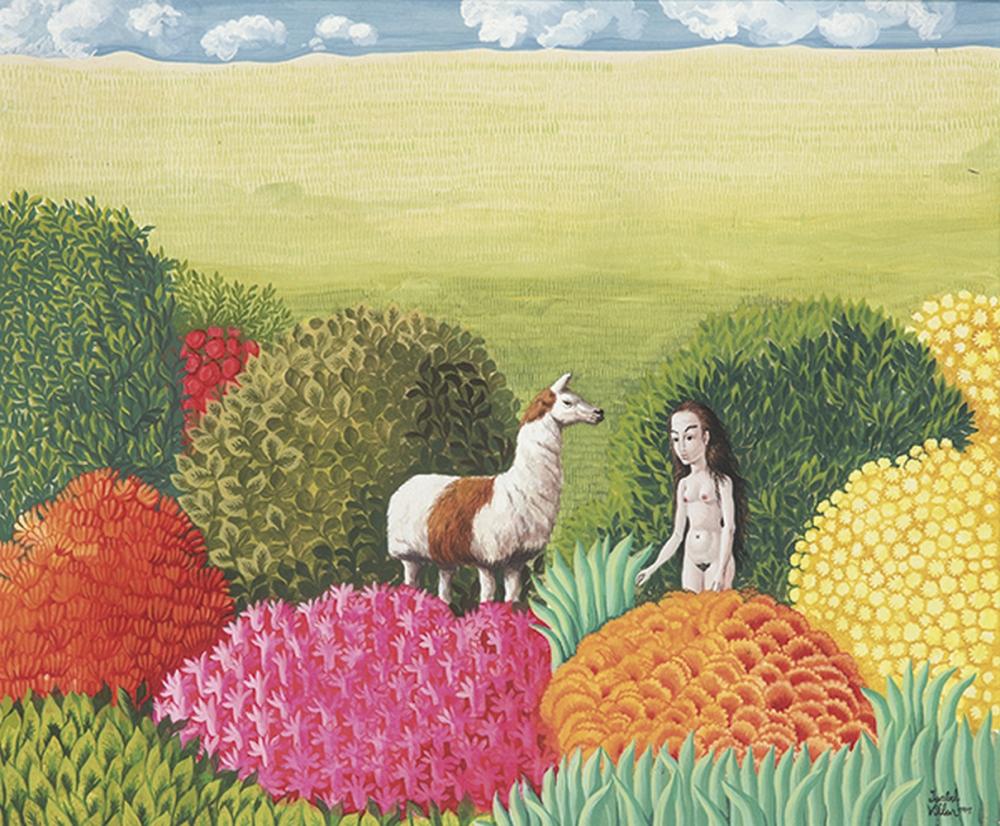 Cuando nos aproximamos por primera vez a la obra de Isabel Villar (Salamanca, España, 1934) nos viene inmediatamente a la cabeza el calificativo de «naif». La artista lo rechaza – posiblemente con razón – porque fuera de los elementos formales que la constituyen, la obra es mucho menos ingenua de lo que aparenta. Pero es cierto que resulta imposible no pensar en los cuadros de Rousseau. En una entrevista para la revista Triunfo Digital, Villar dice: