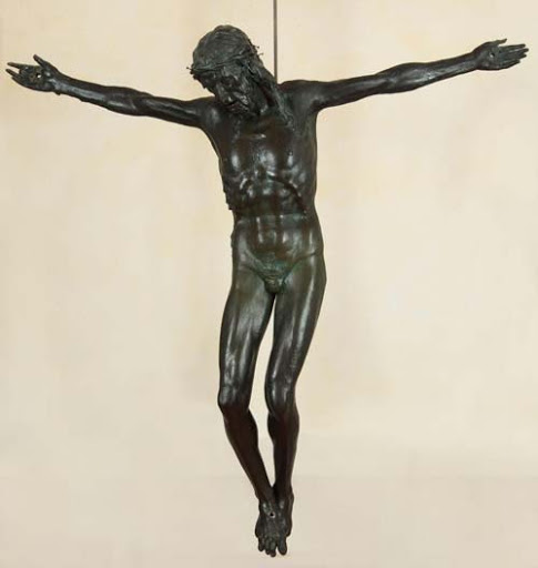 Por último, les muestro una magnífica obra de un Cristo Crucificado, desnudo, antes de que la moralina del barroco impusiese el «perizonium» o «paño de pureza».