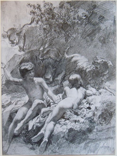 Los desnudos presentados aisladamente son más escasos. Se destaca la figura de este niño de espaldas, de la que existe un dibujo previo: