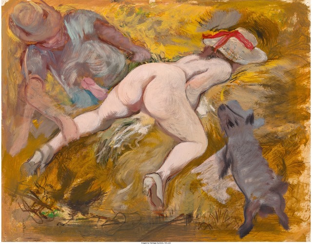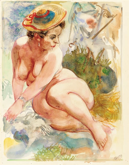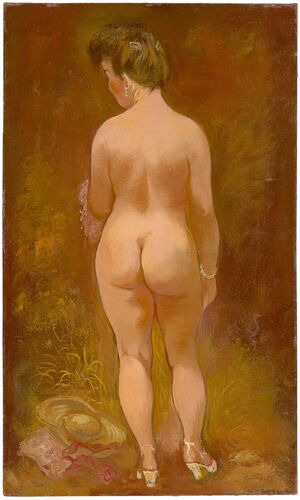 En sus desnudos pictóricos se observan estilos diferentes pero siempre se aprecia una unidad formal que permite el reconocimiento de la autoría de los mismos. Abundan los retratos femeninos y, al mismo tiempo, obras de carácter pornográfico bastante grotescas.