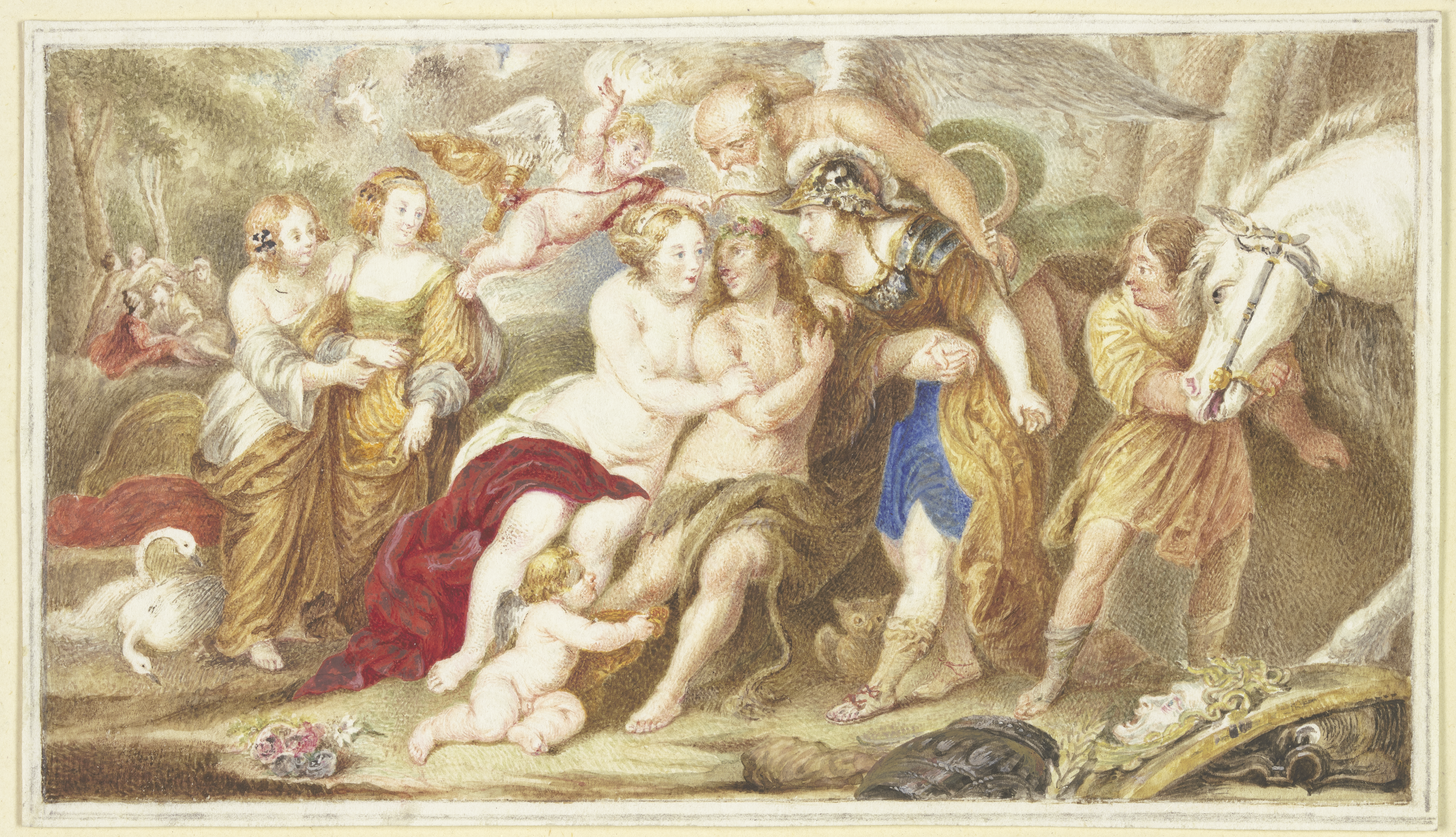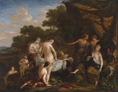Arnold Houbraken (Dordrecht, Países Bajos, 1660-1719). Su obra artística no es muy amplia, apenas un treintena de pinturas que versan sobre temas mitológicos, bíblicos, paisajes y, fundamentalmente, retratos. Aunque fue pintor, dibujante y grabador, destacó más como crítico de arte. En conjunto, pocos desnudos. Pese a ello me ha llamado mucho la atención su obra «El pintor y la modelo», con esa luz oblicua característica de la escuela holandesa, que procede de una ventana y da un carácter íntimo a la escena. No es tan sutil como Vermeer, y la figura femenina no se ve aislada y solitaria. Se presenta antes dos figuras masculinas. El pintor, que mira a su obra, pero no a su modelo, y otro personaje que, curiosamente, tampoco la mira y dirige su vista hacia nosotros sonriendo, como queriéndonos hacer cómplices de una escena algo equívoca. La misma estructura triangular se aprecia en su versión de «Susana y los viejos» pero ahora no hay espectador y las miradas de los tres personajes cierran rígidamente la escena. La composición excéntrica se ve equilibrada por una estatuilla, algo oculta por las sombras, en el lado derecho del cuadro.