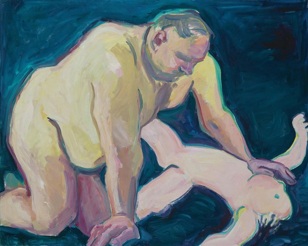 Maria Lassnig (Kappel am Krappfeld, Carintia, Austria, 1919-2014) fue una destacada pintora que partiendo del surrealismo logró una obra fuerte e impactante, expresionista, con un contenido reivindicativo feminista. Sus imágenes tienden a ser siluetas deformadas y conscientemente «afeadas», violentas y ocasionalmente grotescas, en lo que la artista denominó «la consciencia corporal». Comenta:
