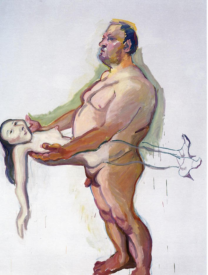 Maria Lassnig (Kappel am Krappfeld, Carintia, Austria, 1919-2014) fue una destacada pintora que partiendo del surrealismo logró una obra fuerte e impactante, expresionista, con un contenido reivindicativo feminista. Sus imágenes tienden a ser siluetas deformadas y conscientemente «afeadas», violentas y ocasionalmente grotescas, en lo que la artista denominó «la consciencia corporal». Comenta: