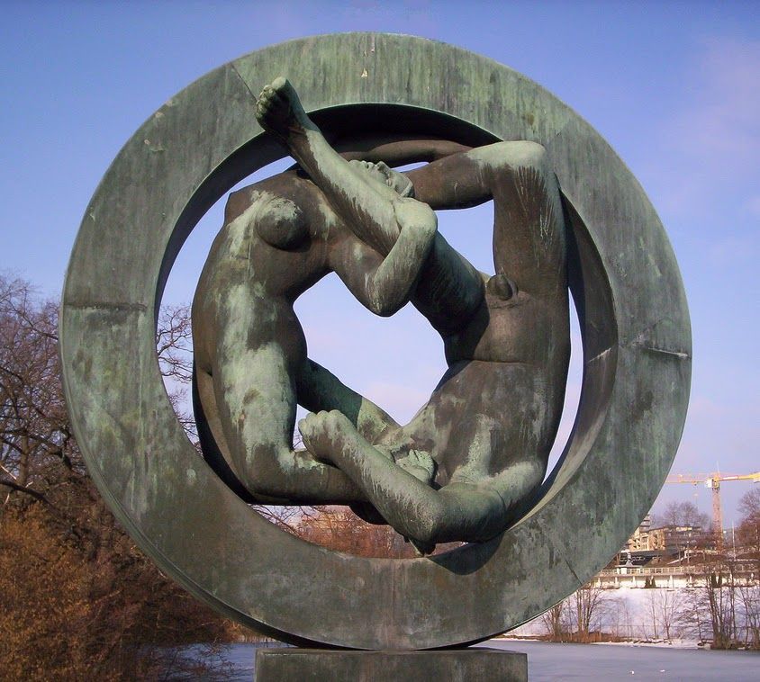 Gustav Vigeland (Mandal, Noruega, 1869-1943) está considerado como el escultor noruego más importante de todos los tiempos, pero también uno de los más controvertidos. Su arte siempre ha sido objeto de polémica y no deja indiferente a nadie. Tuvo una vida difícil, en ocasiones mísera, que logró encauzar gracias a diversas becas estatales. La primera lo llevó a trabajar con el célebre escultor danés Christian Gottlieb Vilhelm Visen y la segunda le permitió conocer, en París, a Rodin, por el que profesó la máxima admiración e influyó en su obra posterior. Sus trabajos se encuentran preservados en el Museo Vigeland , pero también en el maravilloso Parque Frogner, ambos en Oslo. Dicho parque contiene una gran cantidad de su obra más monumental. Les muestro algunas de las mismas.
