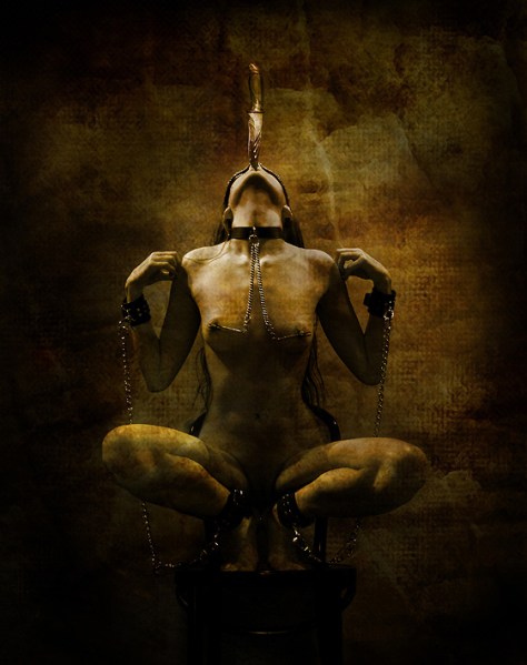 Fotografía y pintura se aúnan en Nicolas Sednin (Izmail, Ucrania, 1968), destacado artista ruso creador de un movimiento conocido como Dee-Art (dos veces arte), que pretende ahondar en las formas de percepción como un camino para mejorar la salud mental. No me resulta fácil determinar las características de este movimiento postmoderno. Por otra parte, sus fotografía son tremendamente pictoricistas y se centran alrededor de la mujer, con elementos surrealistas que, en ocasiones, derivan hacia el sado-masoquismo. Ocasionalmente vemos utilizar en éstas la vieja técnica de la heliografía, muy querida por surrealistas como Man Ray. Sednin es actualmente un artista de gran prestigio, varias veces galardonado en competiciones internacionales.