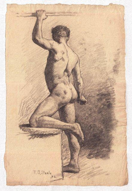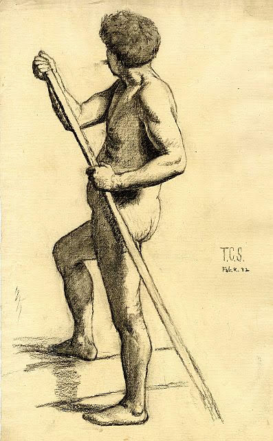 Theodore Clement Steele, o T.D. Steele (Owen County, Indiana, USA, 1847-1926) fue un pintor impresionista americano. Fiel a este estilo, su pintura se centra fundamentalmente en el paisaje y, en menor medida, en los retratos. A diferencia de otros muchos pintores impresionistas estadounidenses, su contacto con el arte europeo no se llevó a cabo en la célebre Académie Julian – ni siquiera en Francia – aunque participó en la Exposición Universal de 1900 celebrada en París. Después de su periodo formativo local, viajó a Alemania con una beca y amplió conocimientos del arte europeo en las pinacotecas de Múnich. Desde el punto de vista del desnudo, su obra pictórica es más bien escasa. Sin embargo, su producción de dibujos masculinos de estudio, en poses muy características del realismo decimonónico, es muy amplia. Aquí les dejo con algunas muestras.