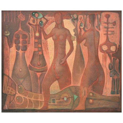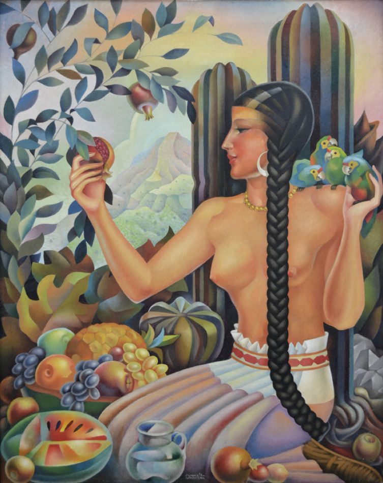 Jorge González Camarena (Guadalajara, Jalisco, México, 1908-1980) se destacó como pintor, escultor y muralista. Su personal estilo tiene como punto de partida el arte prehispánico y popular mexicano, la gran tradición muralista de su país y, dentro de ésta y de un modo muy particular, la obra de Diego Rivera. Un estilo muy colorista en el que se aprecia una tendencia hacia la geometrización de inspiración cubista.