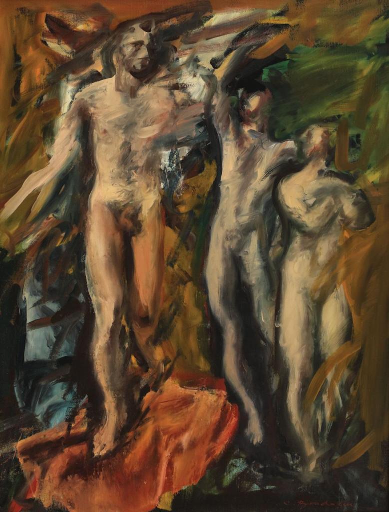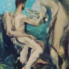 Cornel Brudascu (Tusa, Rumania, 1937) es uno de los grandes artistas contemporáneos europeos. Su obra se encuentra asociada al Pop-Art internacional y como tal utiliza frecuentemente superficies con colores planos, o esas combinaciones cromáticas propias de la solarización fotográfica. Los cuerpos desnudos, poco delimitados en general, llegan a aproximarse al informalismo. Independientemente de un posible carácter erótico, forma y color destacan un carácter dramático en estas figuras masculinas que, en algún momento me recuerdan ese expresionismo temprano de el Greco.