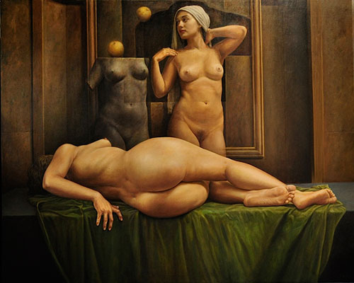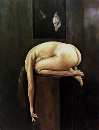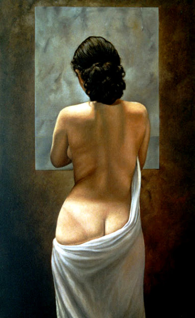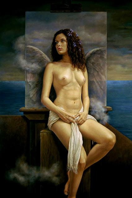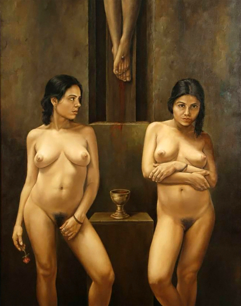 Rolando Cubero (Costa Rica, 1957) es un gran exponente de la figuración, con una obra fuertemente inspirada en el realismo mágico sudamericano, en la que se dan la mano realismo (casi hiperrealismo) y surrealismo, y un elemento erótico más o menos pronunciado. El crítico Juan Carlos Gómez Zúñiga presenta en la plataforma Vimeo un interesante análisis crítico de su obra, de la que les presento algunos ejemplos.