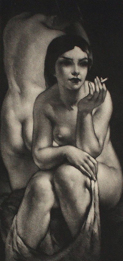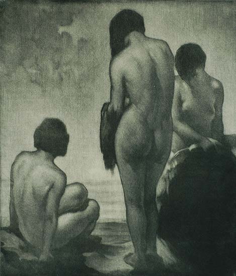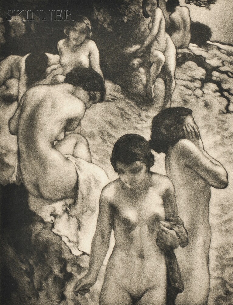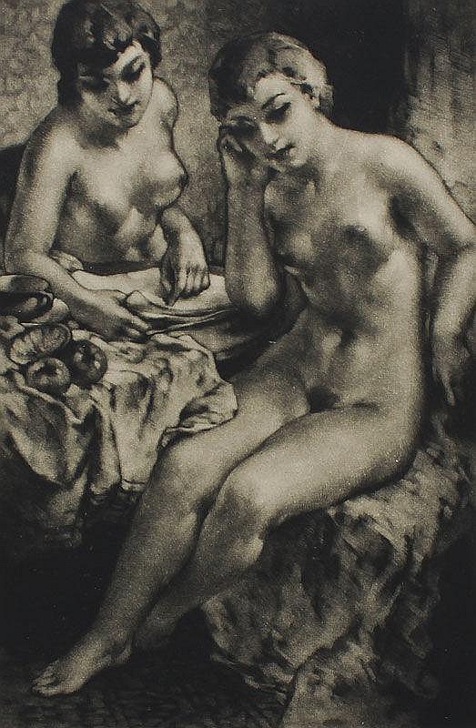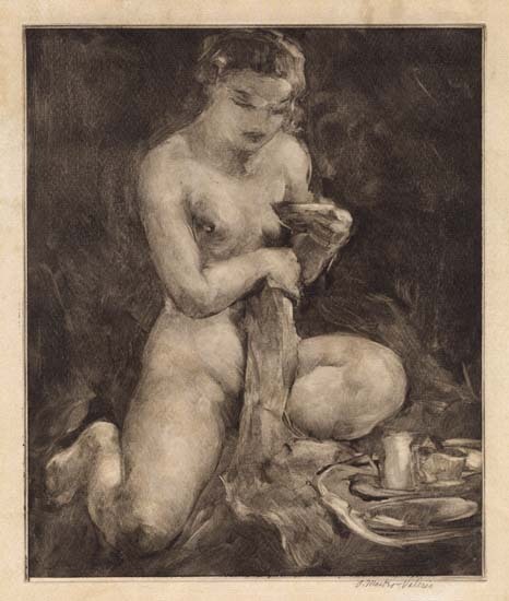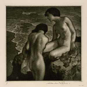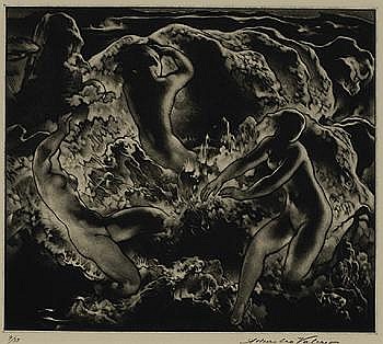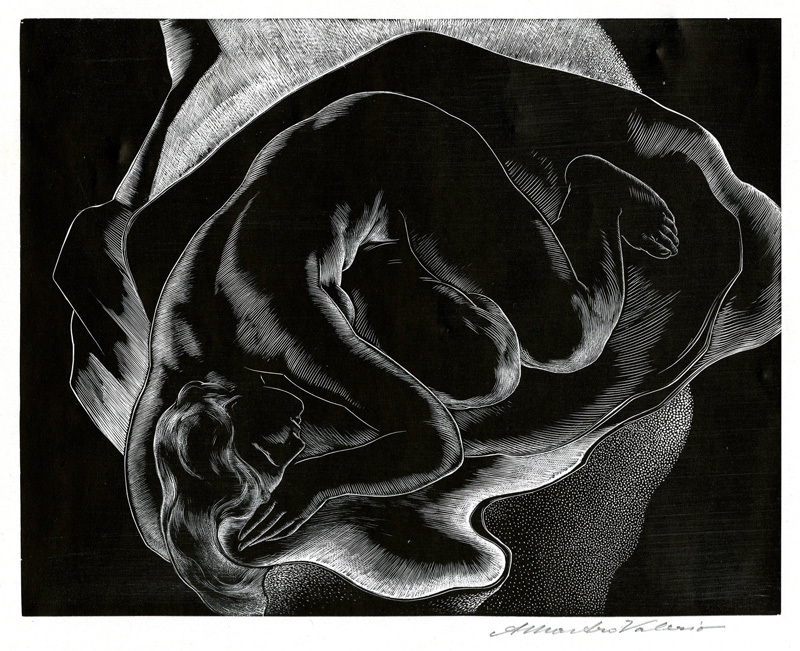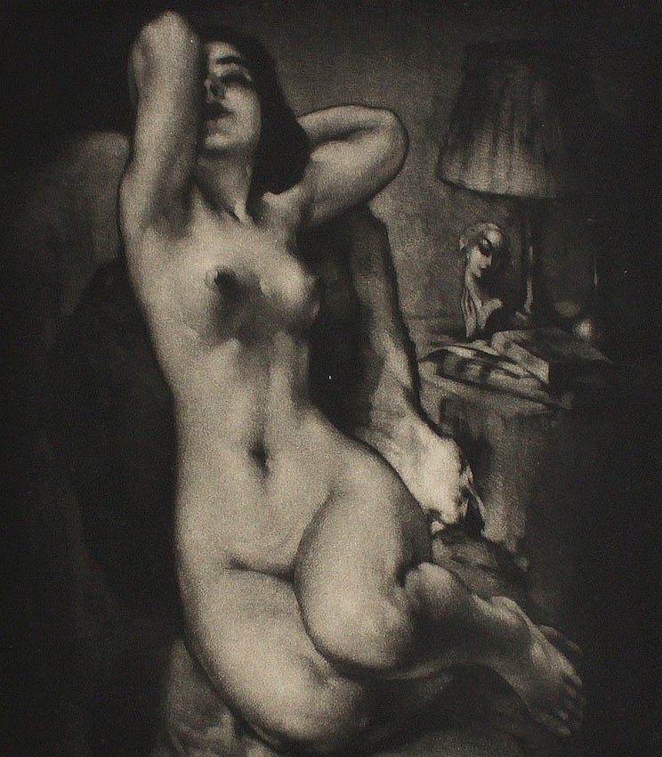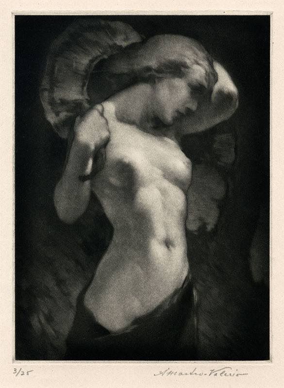 Sin lugar a dudas, las obras más conocidas del artista italo-americano Alessandro Mastro Valerio (Sannicandro Garganico, Italia, 1887-1953) son sus grabados a la media-tinta – también conocidos como a la manera negra o al humo – de mujeres desnudas. Esta compleja técnica le permitió generar una amplia gama de tonos de grises que confieren a sus figuras tanto volumen como un aspecto aterciopelado. Mastro-Valerio emigró en 1913 a los Estados Unidos, donde ejerció como docente en la Universidad de Michigan y llevó a cabo una actividad artística que comprendía técnicas tan diversas como el grabado, el óleo o la acuarela, una gran variedad temática, y un estilo que fue evolucionando hacia la abstracción.