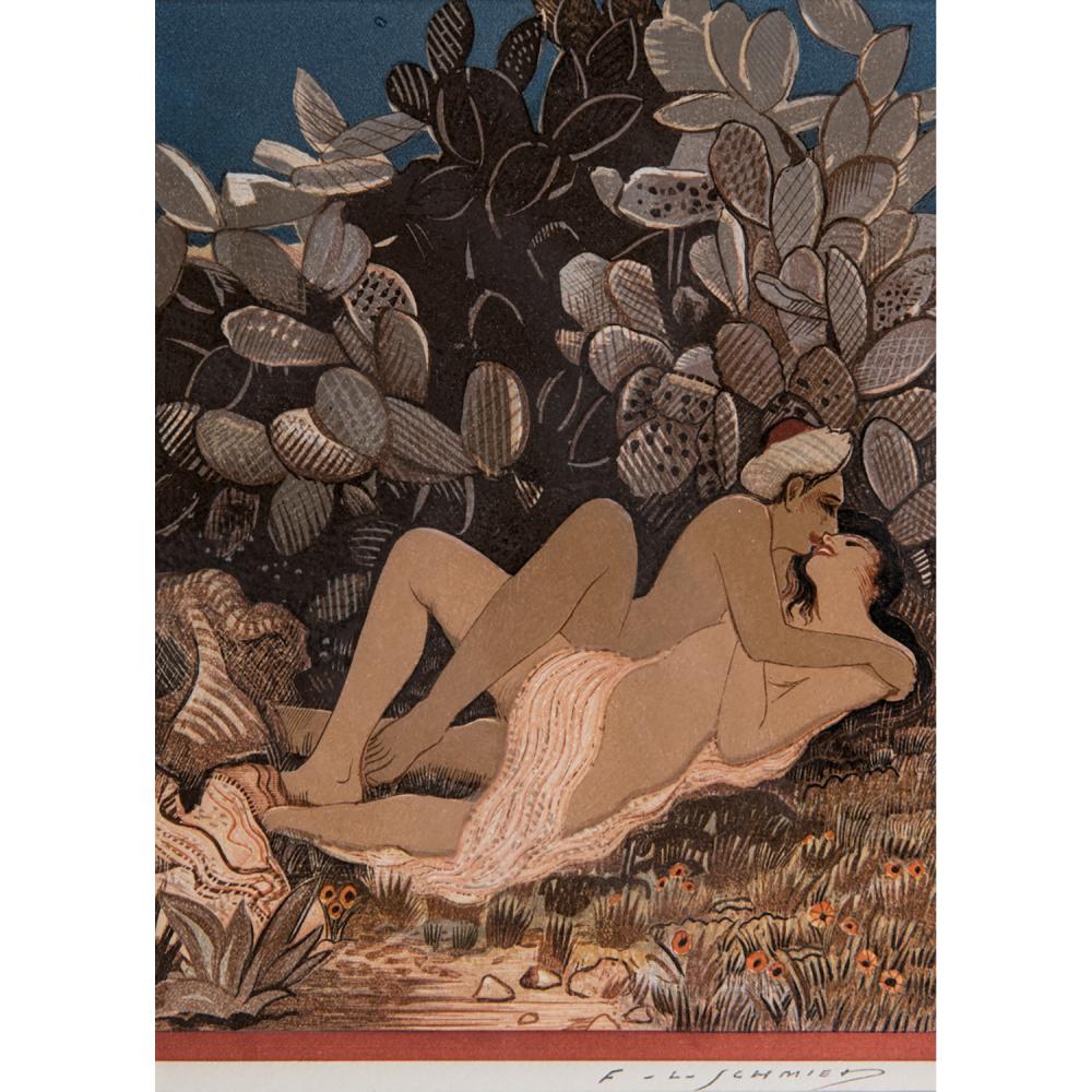 François Louis Schmied (Génova, Suiza, 1873-1941) pintor, ilustrador, grabador e impresor – naturalizado francés – fue uno de los mayores exponentes del «art déco» un estilo decorativo que surgió como una evolución natural del «art nouveau» o modernismo. Dentro del mismo se destacó en el campo de las publicaciones bibliófilas. Aquí les muestro una selección de sus desnudos; principalmente grabados.