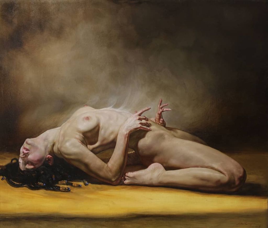 No resulta habitual encontrar en la web referencias al arte moldavo, por lo que quiero mostrarles hoy a un artista contemporáneo de este país: Mihail Dinisiuc (Moldavia, 1989). Un artista realista de inspiración clásica aunque, ocasionalmente, muestra elementos surrealistas. Su especialidad es el desnudo del que nos comenta:
