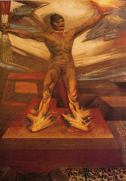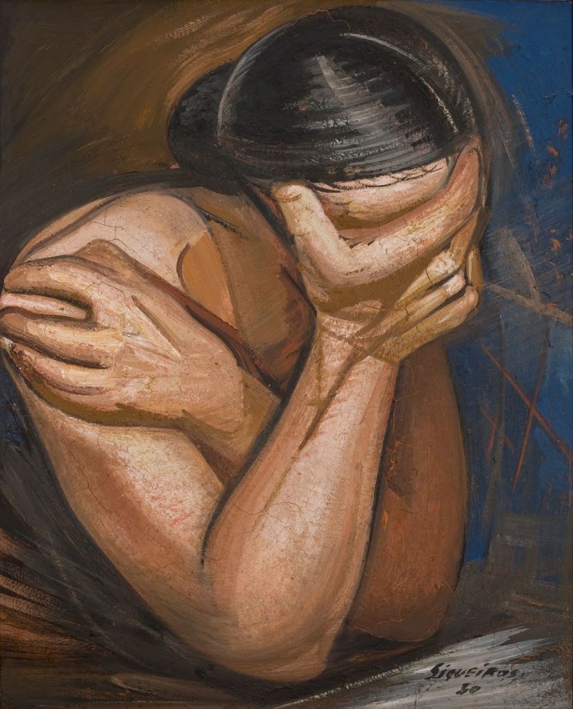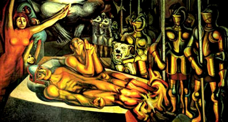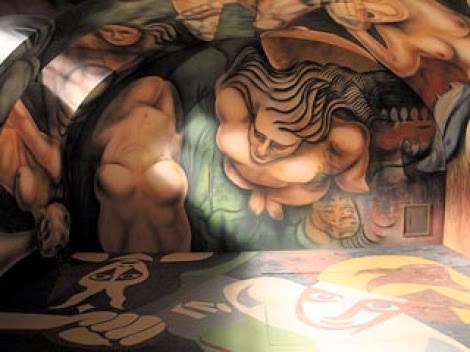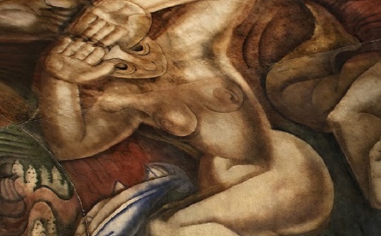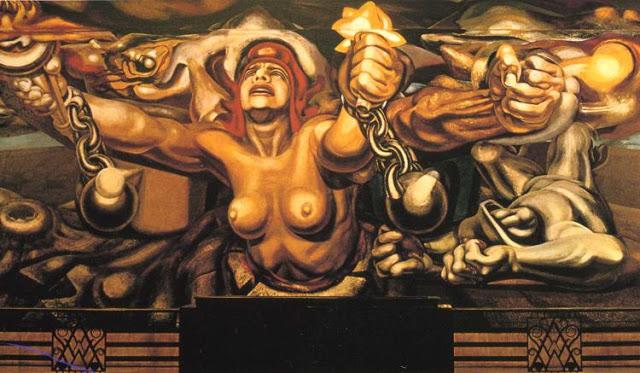 De todos los grandes muralistas mexicanos, David Alfaro Siqueiros (Ciudad de México, México, 1896-1974) es, probablemente, el que presta una menor atención al desnudo. Lo encontramos inmerso en sus grandes composiciones pero raramente las protagoniza. Como excepción, el artista realizó un mural en la Quinta de Los Granados, en Buenos Aires, que se conoce como «Ejercicio Plástico». Al mismo pertenecen estas primeras imágenes que les muestro: