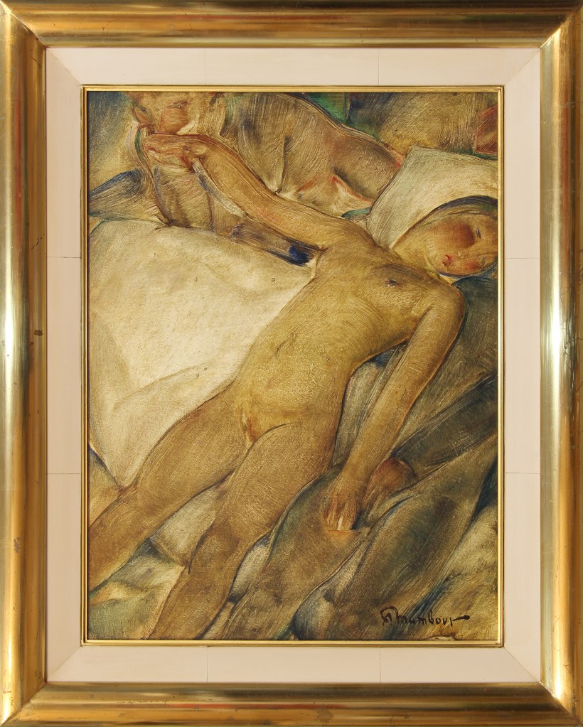Auguste Mambour (Lieja, Bélgica, 1896-1968) – pintor, dibujante y diseñador – fue un artista maldito acusado, después de la Segunda Guerra Mundial, de colaboración con el enemigo y de propagación de ideas racistas. Cumplió 3 de los cinco años de cárcel a la que fue condenado y, a la salida de prisión, organizó una gran retrospectiva de su obra que lo rehabilitó parcialmente. Su obra se ve dominada por un indigenismo africano, adquirido durante su estancia de seis meses en el Congo, que pretende reincorporar al arte europeo un primitivismo del que, presumiblemente, no quedaban restos en Europa. Se incorporó brevemente al movimiento surrealista.