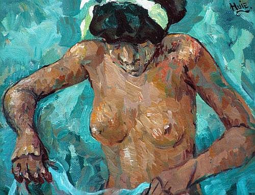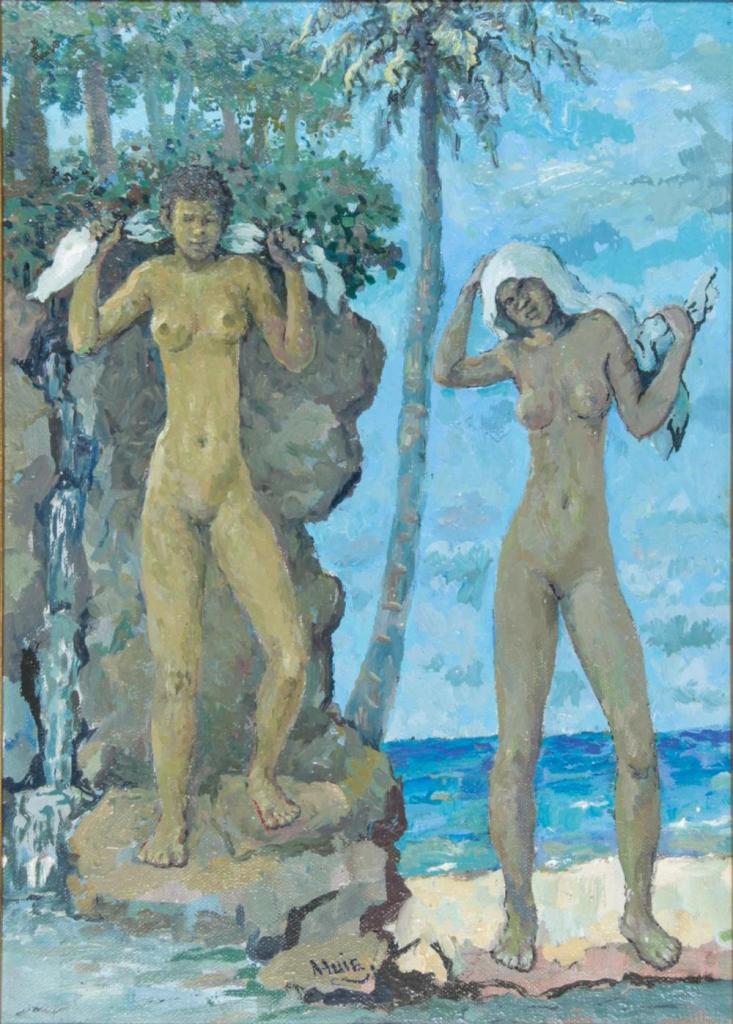 Albert Huie (Falmouth, Jamaica, 1920-2010) es uno de los más destacados pintores jamaicanos, formado tanto en Jamaica como en Toronto y Londres. A estas dos ciudades acudió becado. Miembro de la colonia británica de Jamaica en un momento tumultuoso en el que se puso en tela de juicio las ideas colonialistas, Hui dirige una mirada respetuosa a la comunidad negra local. Historialib, en su entrada a este artista, comenta: