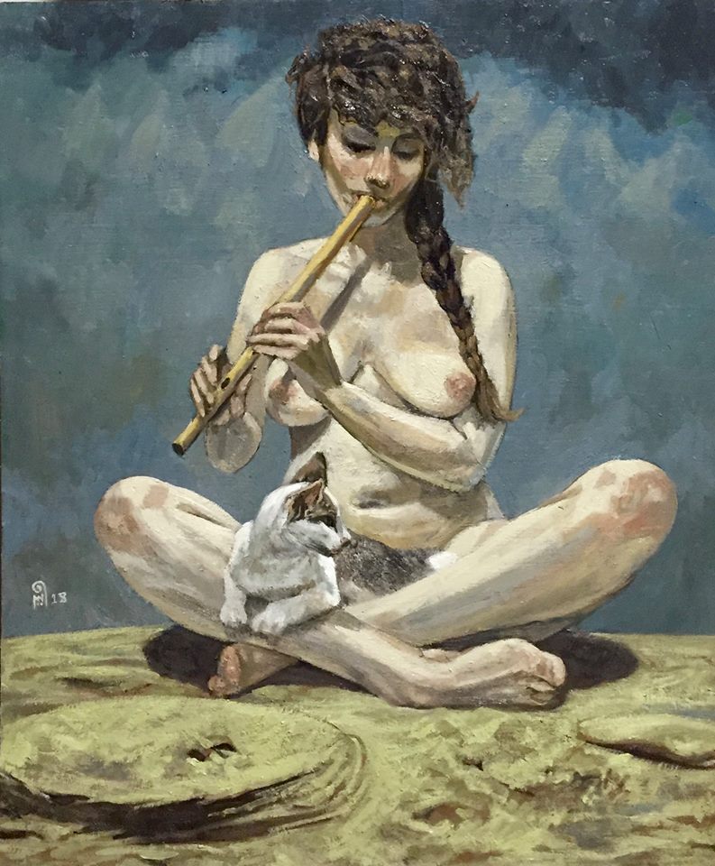 Walid Ebeid (El Cairo, Egipto, 1970) es un artista que se focaliza en la mujer, no para mostrarnos una figura idealizada que se exhibe como objeto de deseo sexual, sino como un ser real, sometido a la incomprensión y hasta la tiranía de una sociedad machista. Su arte es un arte reivindicativo, de protesta, que se muestra siempre de un modo sutil invitándonos a una lectura muy reflexiva. El artista reconoce a Gustave Klimt como la principal influencia artística en su obra. Uniendo a ésta, la pintura tradicional egipcia, crea una obra con un hiperrealismo formal y un expresionismo temático.