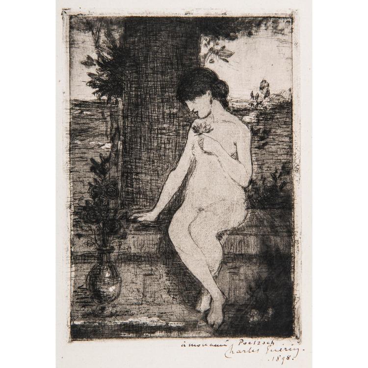 Charles-François-Prosper Guérin (Sens, Francia, 1875-1939) fue un pintor postimpresionista que se formó en la Escuela de Bellas Artes de París, en el taller de Gustave Moreau. Tuvo una cierta relevancia, pero su fama declinó después de la Segunda Guerra Mundial, quedando un poco relegado al olvido. Sin embargo, algunos de sus desnudos o semi-desnudos tienen una gran belleza, siendo particularmente destacable el desnudo femenino con el que inicio esta exposición, que se encuentra expuesto en el Museo del Hermitage.