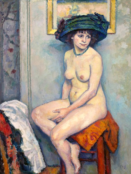 Charles-François-Prosper Guérin (Sens, Francia, 1875-1939) fue un pintor postimpresionista que se formó en la Escuela de Bellas Artes de París, en el taller de Gustave Moreau. Tuvo una cierta relevancia, pero su fama declinó después de la Segunda Guerra Mundial, quedando un poco relegado al olvido. Sin embargo, algunos de sus desnudos o semi-desnudos tienen una gran belleza, siendo particularmente destacable el desnudo femenino con el que inicio esta exposición, que se encuentra expuesto en el Museo del Hermitage.
