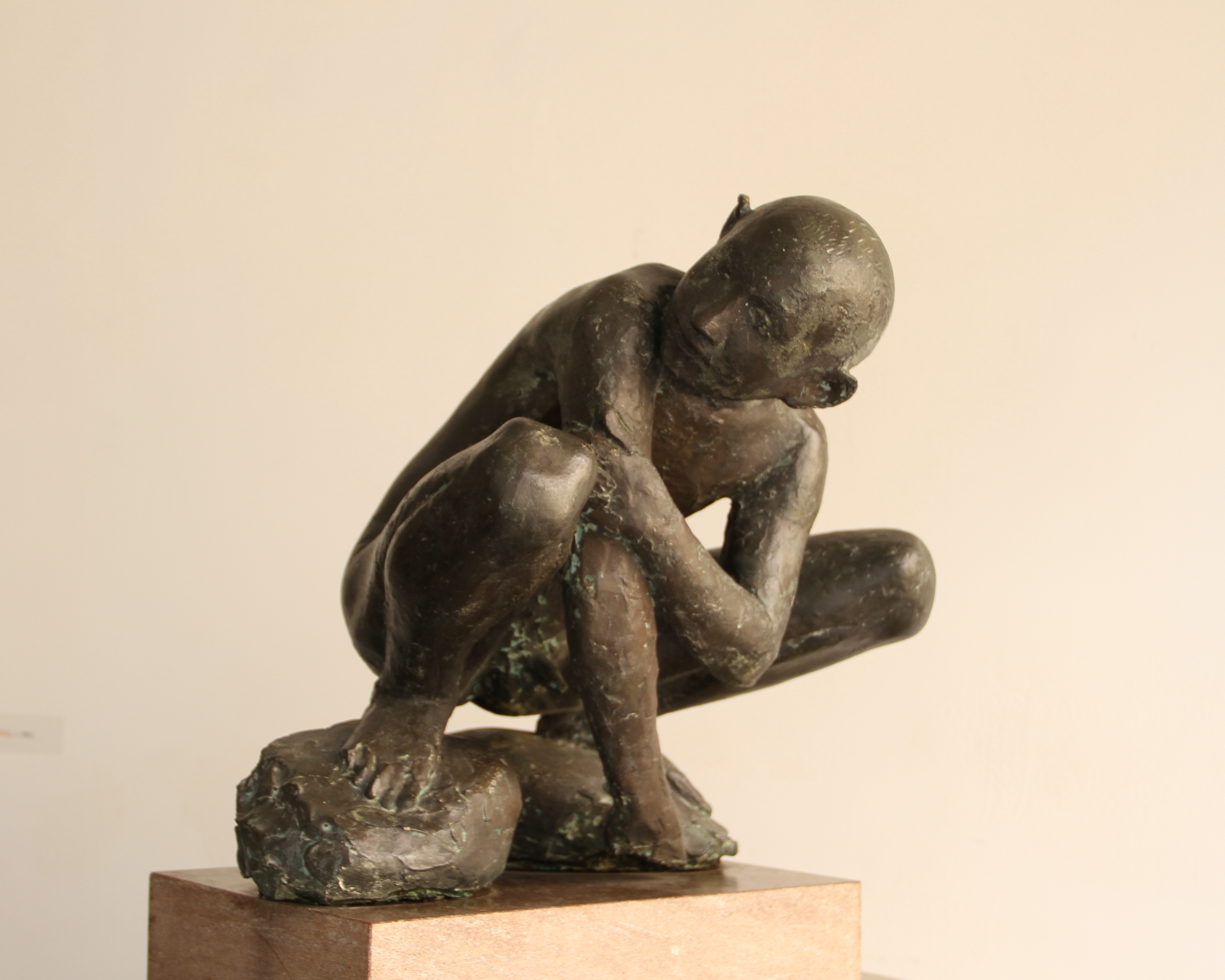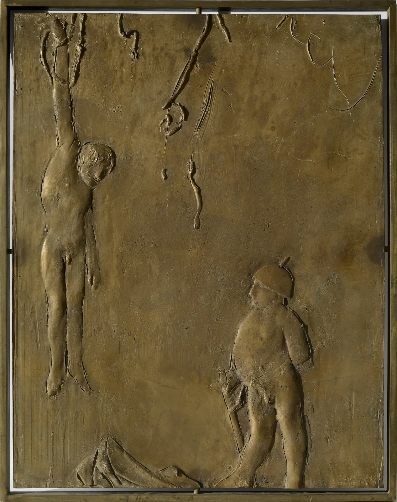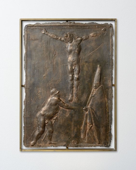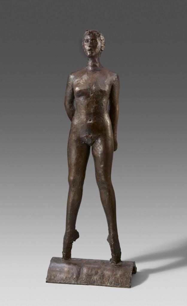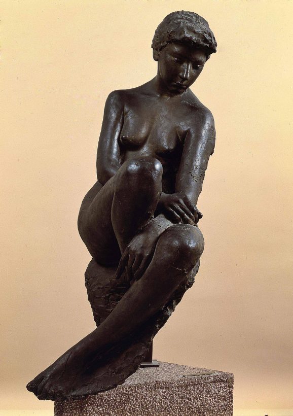 Giacomo Manzú (Bérgamo, Italia, 1908-1991), pseudónimo de Giacomo Manzoni, fue un extraordinario escultor autodidacta italiano cuyo espíritu creativo se formó con el descubrimiento de la obra de Maillol y, posteriormente con el estudio de la escultura de Miguel Ángel y de los clásicos greco-latinos. En los primeros años 30 crea una obra que se aleja del monumentalismo del Novecento pero también abandona su arcaísmo inicial para dirigirse hacia formas más próximas a artistas como Rodin. Un artista singular que supo yuxtaponer su filiación comunista con su amistad con el Papa Juan XXIII y una producción religiosa para el Vaticano.