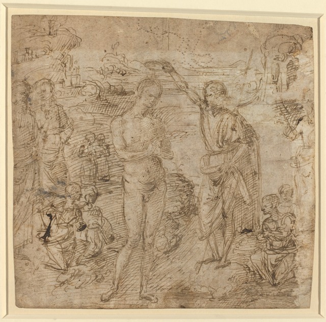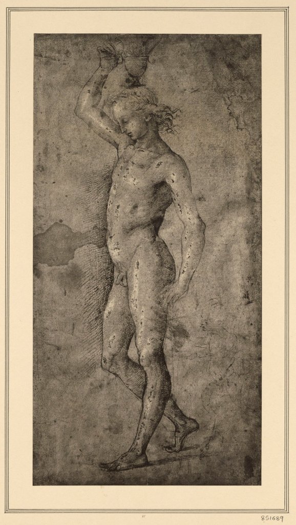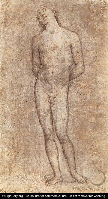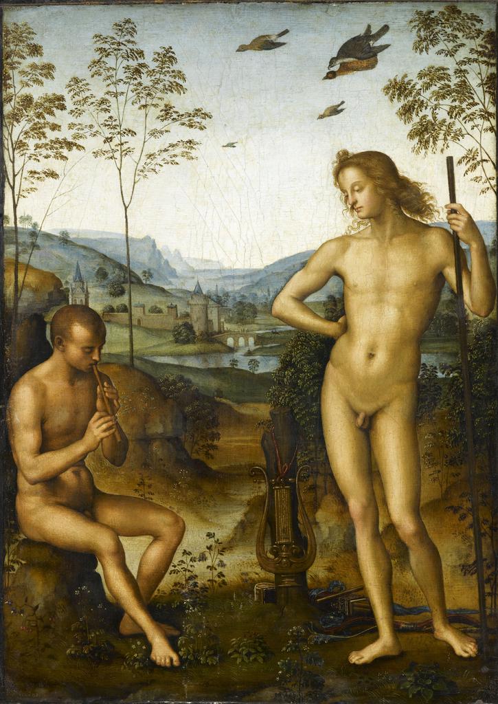 Para hablar del desnudo en la obra de Pietro di Cristoforo Vanucci, llamado El Perugino (Città della Pieve, Umbría, Italia, 1448-1523) debemos tomar muy en cuenta la época en la que desarrolló su labor. Su pintura se enmarca en el Primer Renacimiento, conocido como Quattrocento. Durante este periodo los artistas abandonaron el hieratismo del siglo anterior y desarrollaron nueva formas de lectura de la escena, con el uso de la perspectiva. Perugino fue alumno – como Leonardo da Vinci, Ghirlandaio y Sandro Botticelli – de Verrocchio, más conocido como escultor que como pintor. A su vez fue maestro de Rafael, quien acabó eclipsándolo. Su obra es más religiosa que la de los artistas comentados y por ello, sus desnudos son muy limitados y/o incompletos (mucho San Sebastián, eso sí). No conozco ningún desnudo femenino de este pintor.