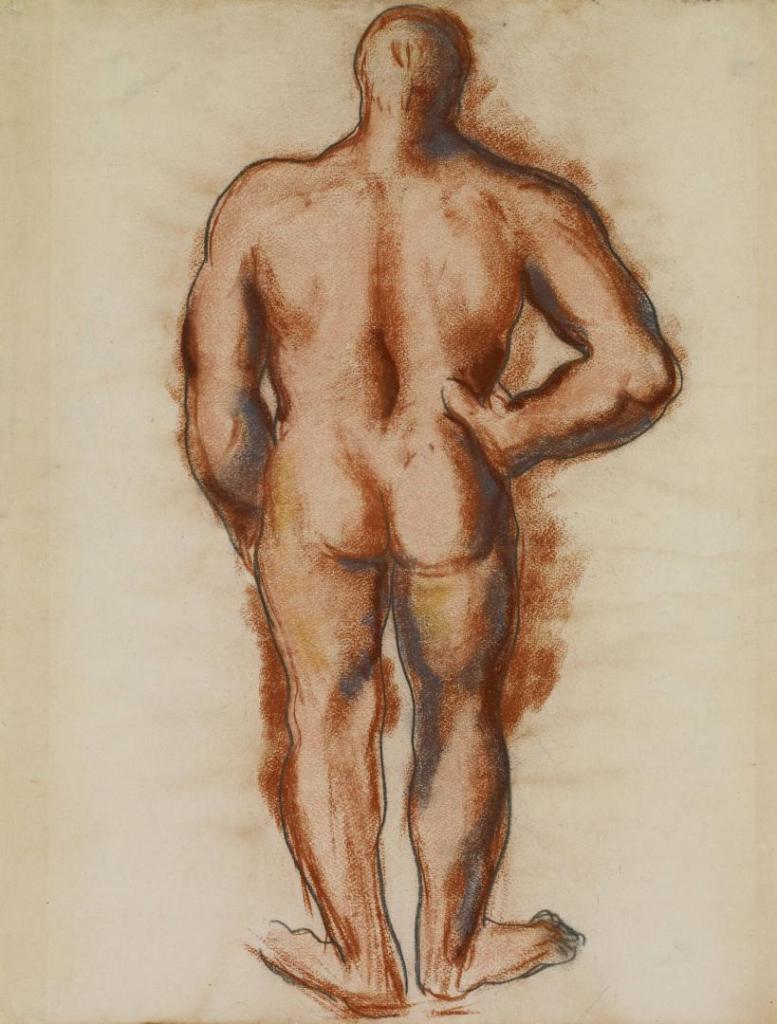 Marsden Hartley (Lewiston, Maine, USA, 1877-1943) fue un pintor, escritor y ensayista que desarrolló un estilo muy influido por el cubismo y el expresionismo. El cubismo lo conoció en París, durante su estancia en la Academia Julian, mientras que el expresionismo bebió de fuentes alemanas. En Berlín se hizo amigo de Wassily Kandinsky y Franz Marc. También conoció a un teniente prusiano, Karl von Freyburg, que fue un motivo recurrente en su obra. Después de la Primera Guerra Mundial, volvió a los Estados Unidos. Nunca declaró ser homosexual, pero sus figuras masculinas desnudas o semidesnudas, se han considerado como una muestra de ello y, con los años, fueron adquiriendo un carácter más íntimo y personal. En cualquier caso, podemos ver que existen desnudos femeninos en su obra.