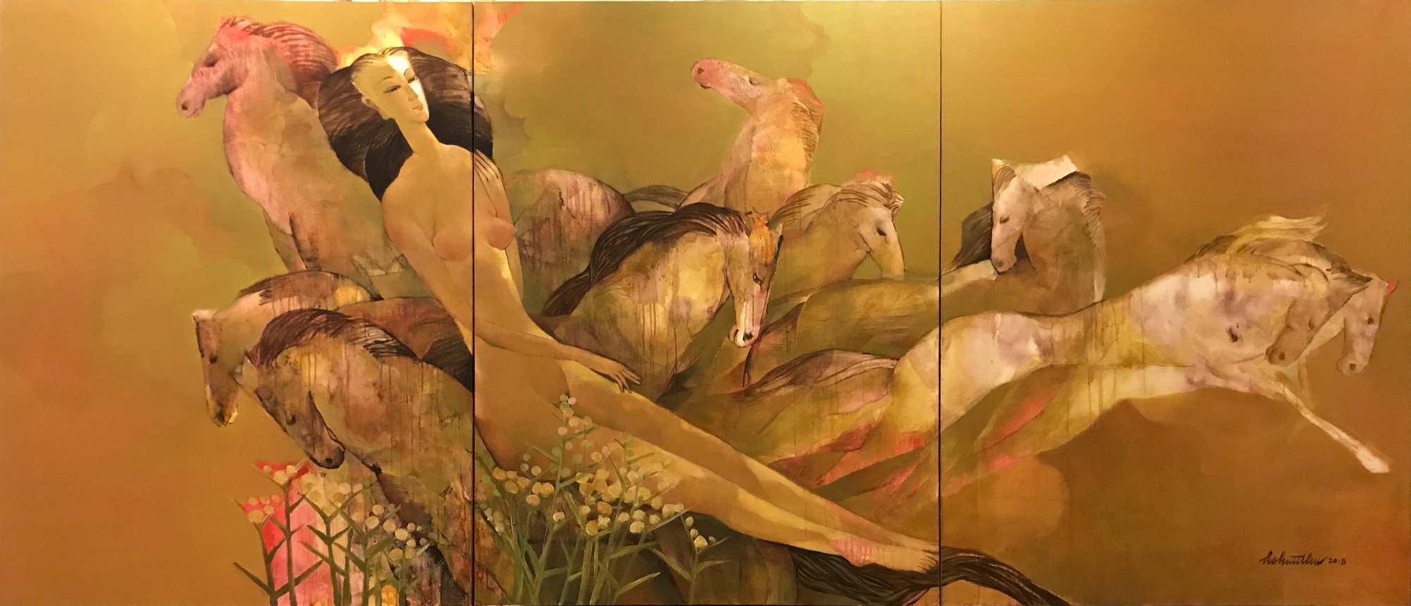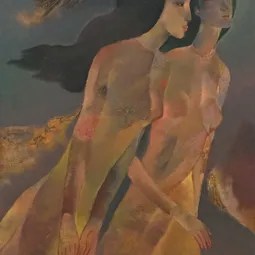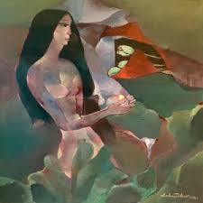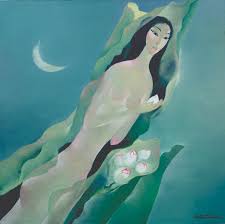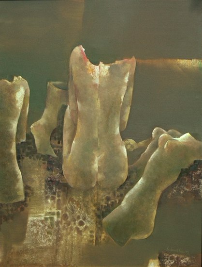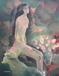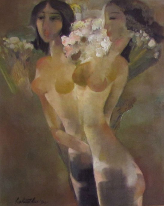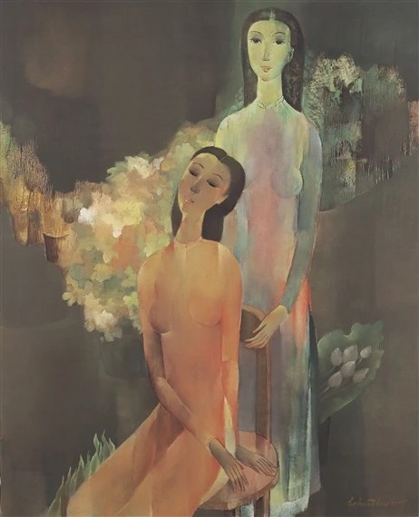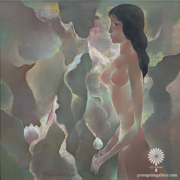 Ho Huu Thu (Nghe An, Vietnam, 1940 o 1942) se formó en el «Vietnam National Fine Art College» de Saigón donde ejerce como profesor. Su estilo es muy personal, con figuras enigmáticas que balancean delicadamente formas y colores y se aproximan ligeramente hacia la abstracción. No dispongo de muchos datos del artista, pero la Galería K. Moeller nos muestra un breve curriculum del mismo.
