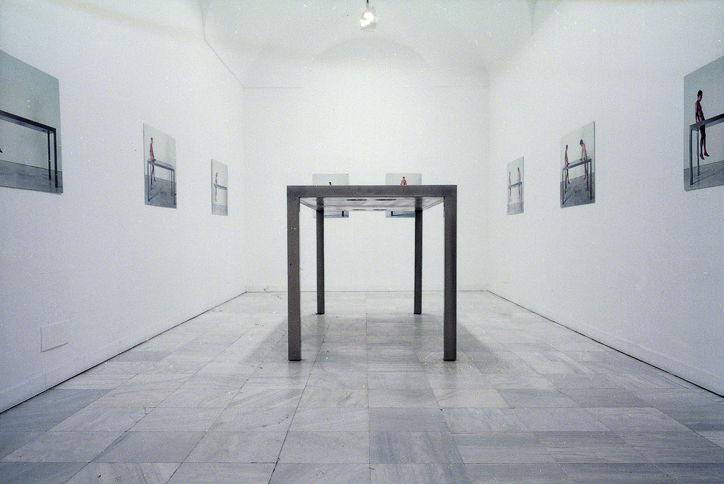 «Fijados en un punto. La capacidad humana de trasladarse se ve anulada por formas cotidianas que definen y obstruyen el espacio. Los pies no llegan al suelo. El contacto es sólo visual. INMÓVILES, los cuerpos no son observados según su posibilidad mudable, abiertos a la transformación del movimiento. Al contrario, están reducidos a una condición inmóvil, apresados por una mesa que debería servir para relacionarnos y, más bien, evoca una cocina, un quirófano, un instrumento de tortura o cualquiera de esas cosas donde la carne deja de ser el cuerpo de un sujeto.