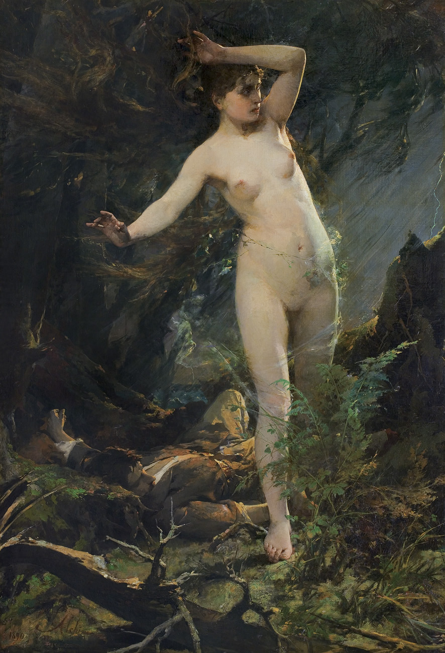 Verdaderamente no se si el país de nacimiento del artista Kazimierz Alchimowicz (Dziembrow, Bielorrusia, 1840-1916) es el que le asigno en esta entrada. Las cambiantes fronteras de los países europeos en los últimos siglos, pueden justificar que pueda verse asociado su nombre a Polonia, Lituania y a Bielorrusia. En cualquier caso, después de haber vivido una temporada en Alemania y Francia, se asentó hasta su muerte en Varsovia, y se le suele considerar un pintor polaco. Se destacó en temas históricos y patrióticos de tipo romántico, y fue muy apreciado en su época.