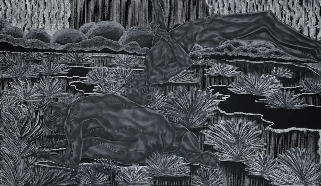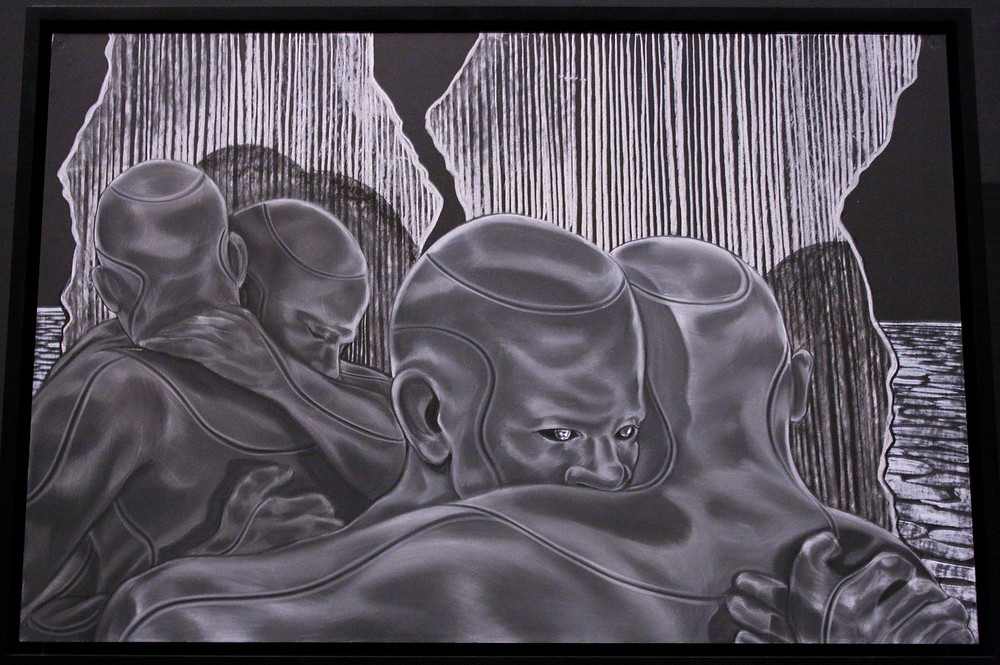 Me sorprende gratamente encontrarme con una mujer joven, procedente del África Negra, que está logrando un claro reconocimiento internacional. La calidad artística de la obra de Toyin Ojih Odutola (Ife, Nigeria, 1985) creo que está fuera de toda duda. La artista, que vive en los Estados Unidos, acaba de presentarnos, en el «The Hirshhorn Museum and Sculpture Garden» de Londres, una gran instalación con el título «A Countervailing theory». En la misma se imagina una civilización prehistórica en la que los tradicionales roles de género de nuestra sociedad, se han invertido.