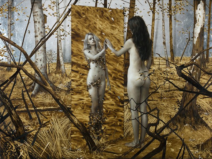 Se suele considerar al periodo postmoderno como una época de neo-movimientos (neo-expresionismo, neo-barroco…). Sin embargo, el neo-modernismo parece estar menos presente. La obra de Brad Kunkle (Lehighton, Pensilvania, USA, 1978) parece inspirarse en ese movimiento de los últimos años del siglo XIX y primeros XX, especialmente por su destacado uso de láminas de oro y plata que se incorporan a los óleos. La figura femenina protagoniza en general sus desnudos.