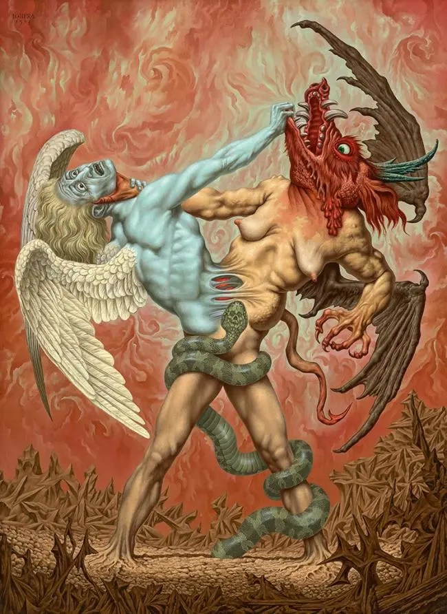 Johfra Bosschart (Róterdam, Países Bajos, 1919-1998) se llamaba realmente Johannes Franciscus van den Berg Gijsbertus, por lo que Johfra es un acrónimo de su nombre. El apellido Bosschart correspende al apellido de soltera de su madre. Este pseudónimo no es un elemento «anómalo» aislado. La temática de toda su obra resulta extraña: astrología, ocultismo, simbolismo, religión, magia, brujería… Dibujante excepcional desde su primera juventud, no fue demasiado reconocido en vida.