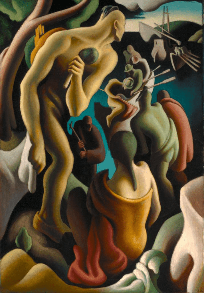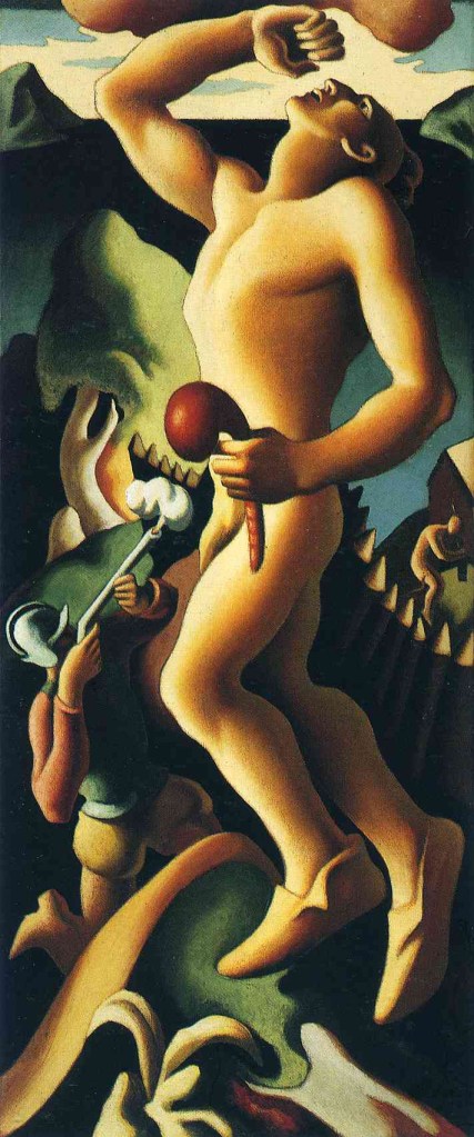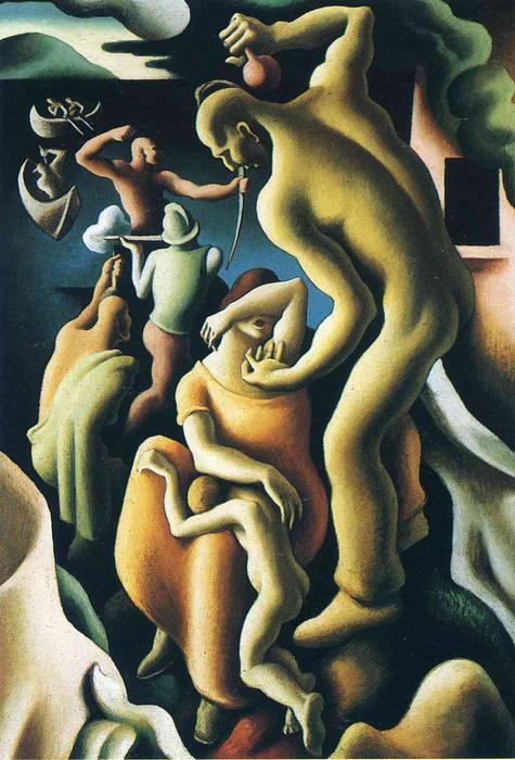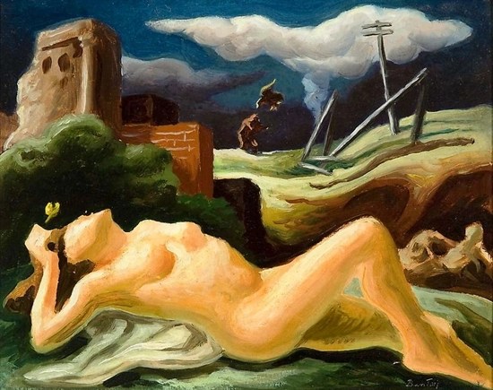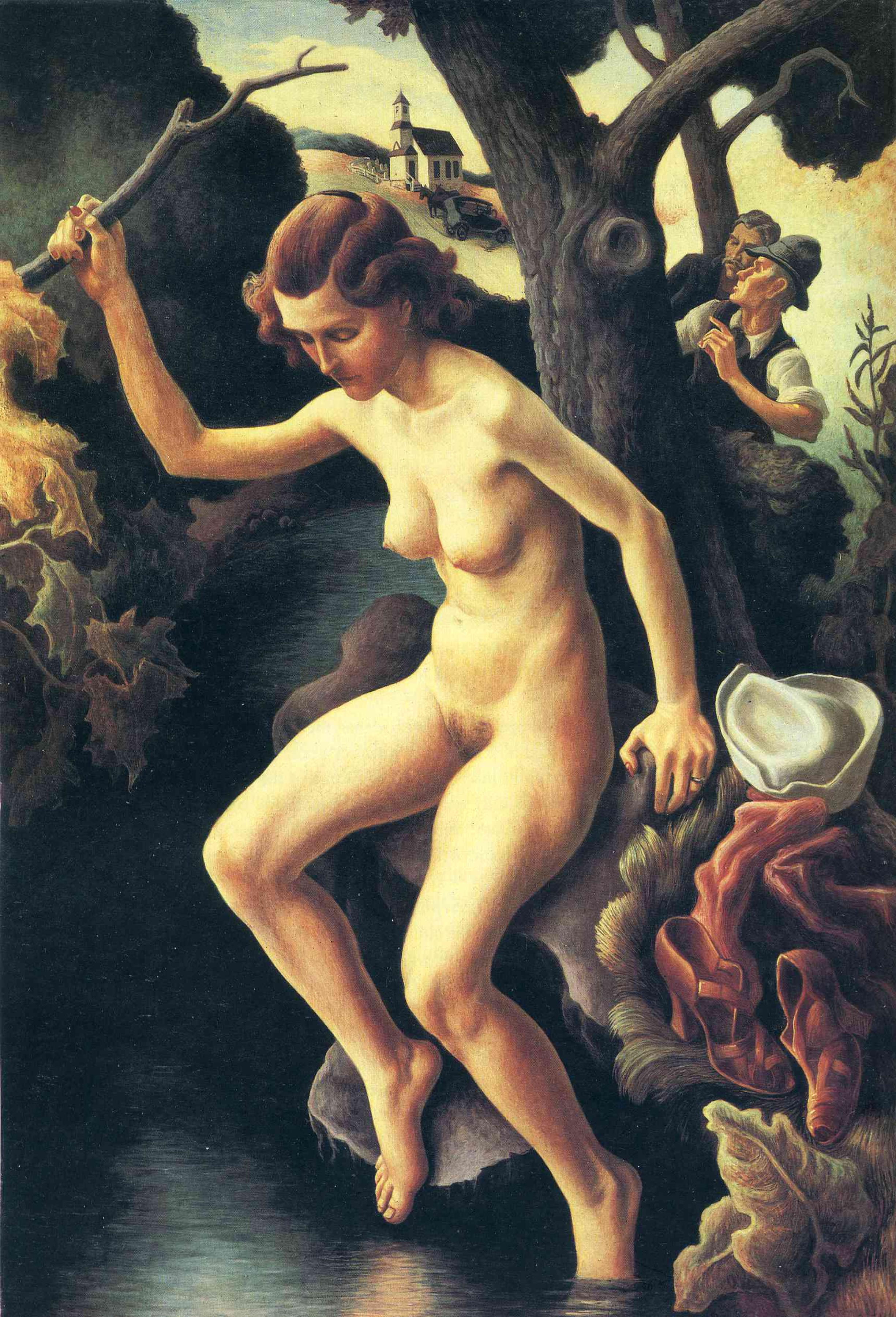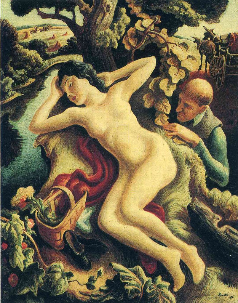 Thomas Hart Benton (Neosho, Misuri, USA, 1889-1975) fue un pintor – hijo de una familia acomodada -, que pese a haber recibido una formación artística en París, que lo inició en una pintura modernista y próxima a las vanguardias europeas, abandonó pronto este camino para realizar una obra de corte realista y ocasionalmente caricaturesca. Se le considera uno de los máximos exponentes de la denominada escuela regionalista. Junto a su labor pictórica desarrolló siempre una labor docente, y fue alumno suyo Jackson Pollock.