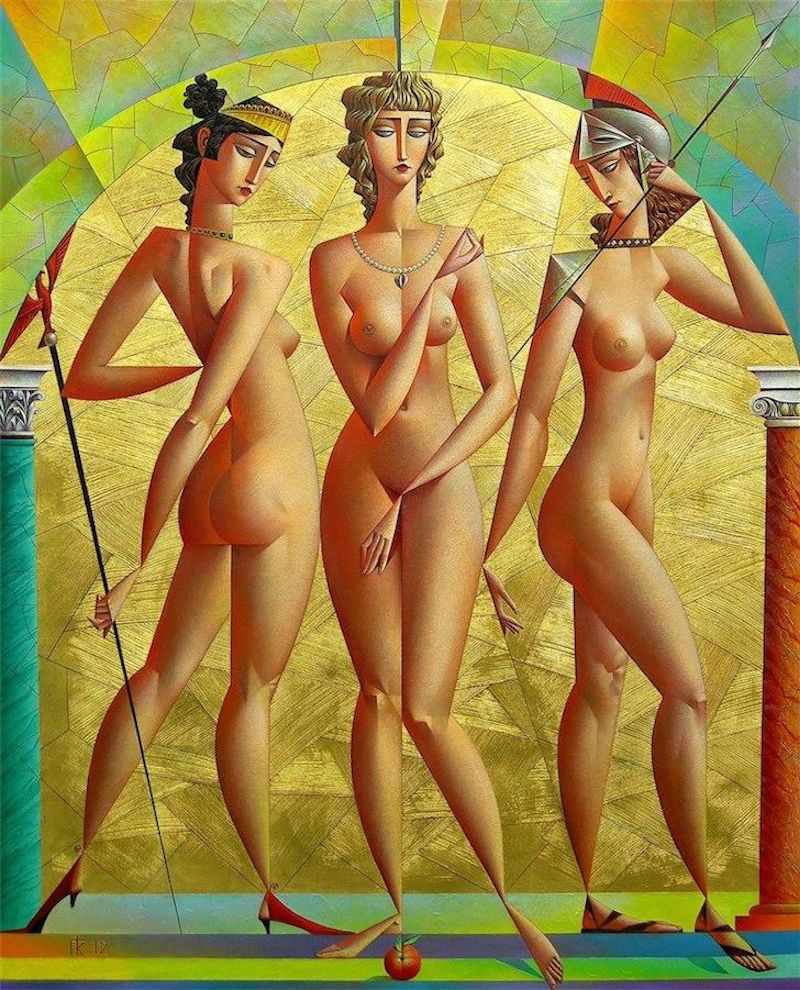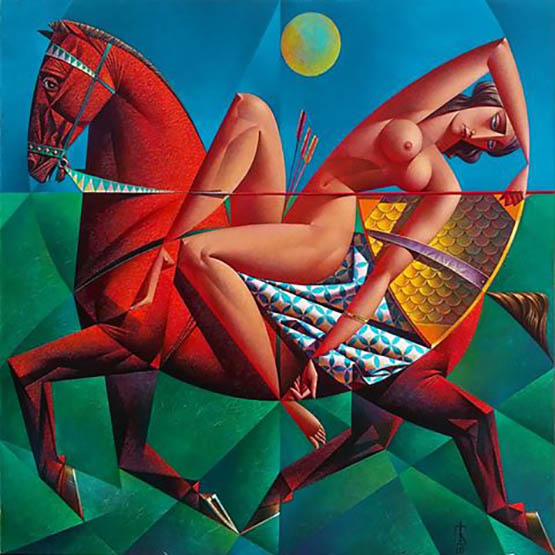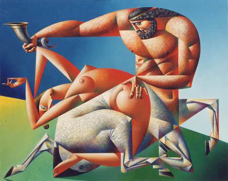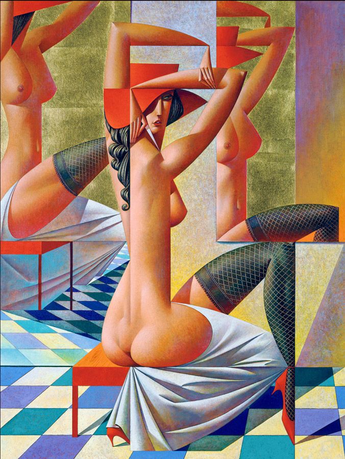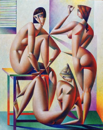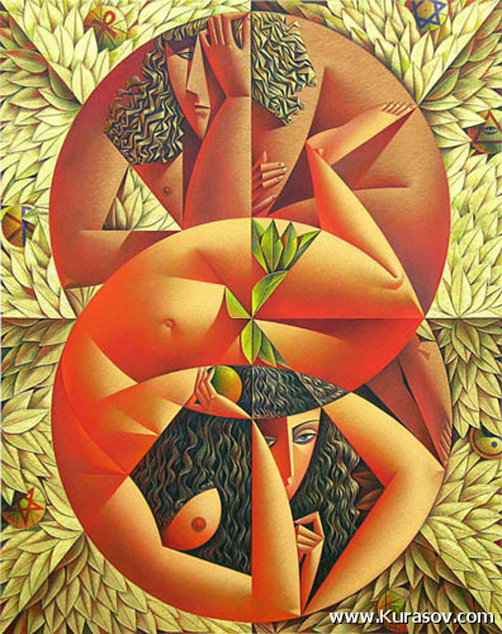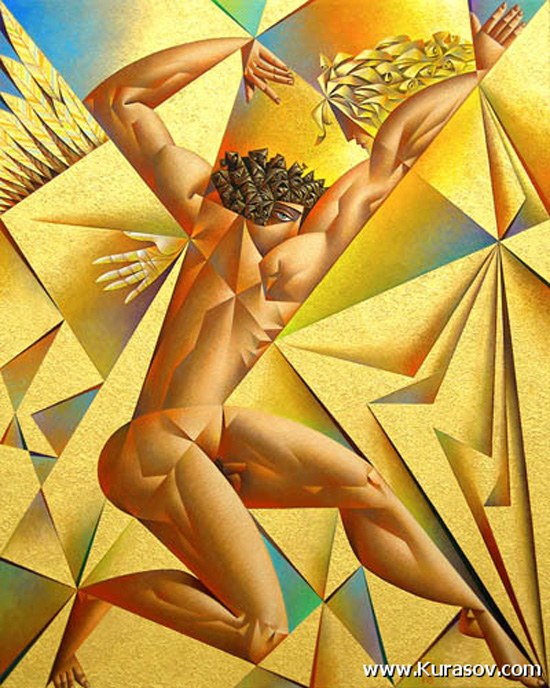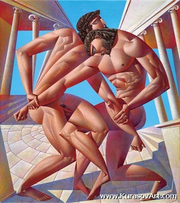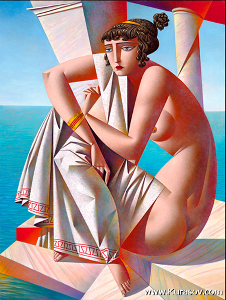 Georgy Kurasov (San Petesburgo, Rusia, 1958) es un pintor de la antigua URSS que nació en pleno apogeo del Realismo Socialista. Cuando a los 13 años intentó ingresar en la Academia de las Artes, sus profesores le aconsejaron que se dedicase a la escultura dada su total ausencia de sensación de color. Hago esta reseña porque su obra muestra un extraordinario colorismo, junto a esas construcciones arquitectónicas del cuerpo humano con influencias cubistas. Después de la caída de la URSS este artista se volcó en el mercado americano.
