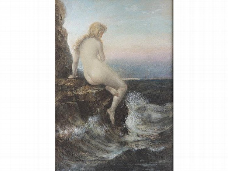 Resulta sorprendente encontrarnos con la siguiente obra, «Lady of the Sea», una pintura al pastel realizada por este fotógrafo: