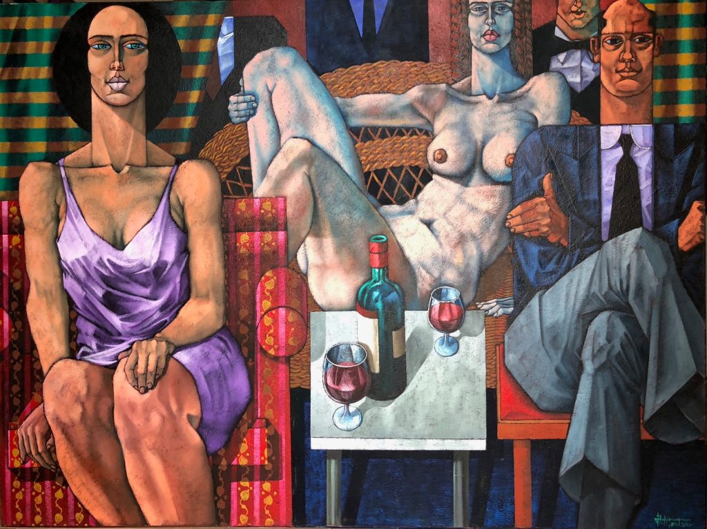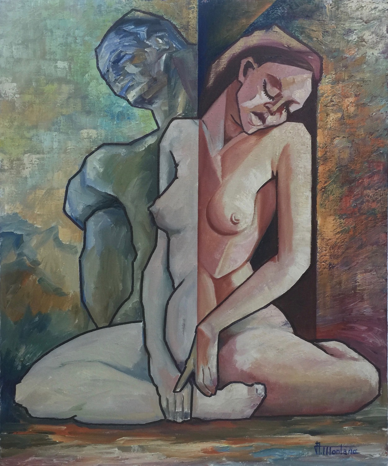 Alfredo Montaña (Oviedo, Asturias, España, 1945) es profesor de Historia del Arte de la Universidad de Salamanca, pero también autor de una obra pictórica fuertemente colorista, con formas voluminosas muy delimitadas y planos geométricos que sugieren una influencia del cubismo. Su temática es muy diversa y sus personajes expresionistas, melancólicos e introspectivos, con ojos rasgados. No abundan los desnudos.