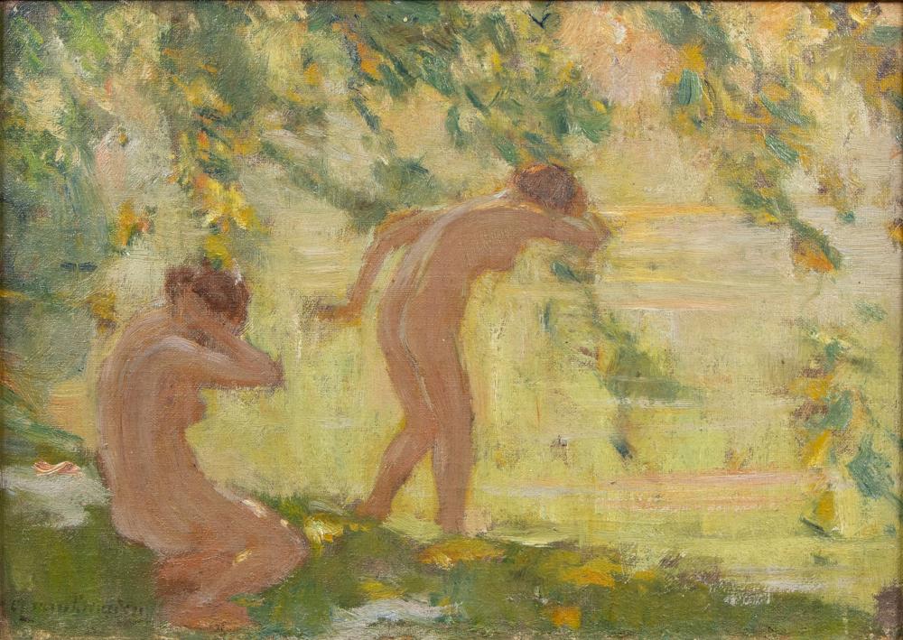 Les presento aquí a una pareja de artistas que no debemos confundir. Alfons Van Beurden, el padre, etiquetado en ocasiones como Sr. o I (Amberes, Bélgica, 1854-1938)- fundamentalmente un escultor-. y Alfons Van Beurden, el hijo, etiquetado como Jr. o II (Amberes, Bélgica,1878-1962), que se distinguió en general como pintor paisajista. La obra del pintor se vio claramente influenciada por el impresionismo.