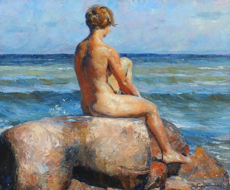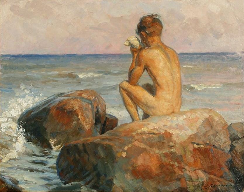 Johannes Grenness (Drammen, Noruega, 1875-1963) pasó la mayor parte de su vida en Dinamarca, por lo que se le considera también un pintor danés. Estudió con P.S. Kroyer – lo que evidencian varias obras que les muestro -, y con Wassily Kandinsky. Su fama se debe, principalmente, a sus paisajes dotados de una sutil y personal atmósfera.