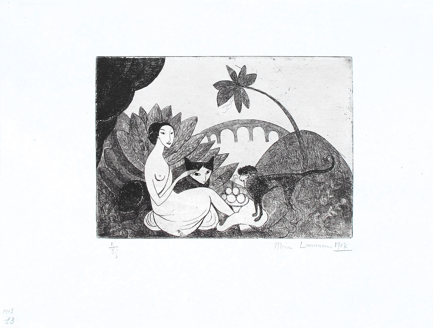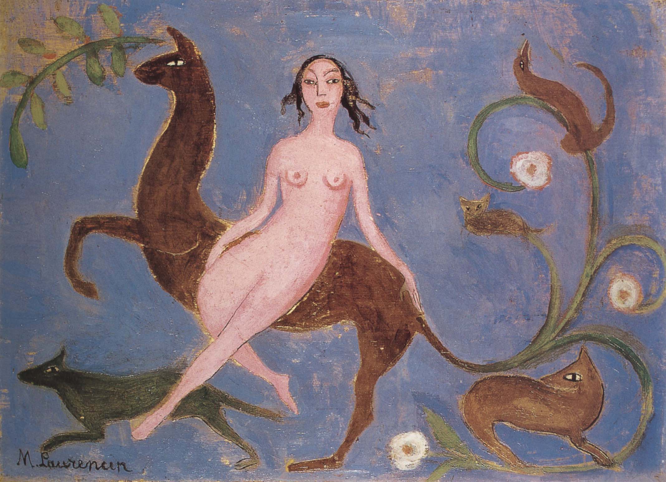 Marie Laurencin (París, Francia, 1883-1956) fue una pintora y grabadora afín al cubismo y el fovismo, creadora de una pintura protagonizada por una mujer de apariencia ingenua y convencional, con colores suaves en los que dominan los tonos pastel. Esto parece contrastar con la propia figura de la pintora que fue pareja de Guillaume Apollinaire y que trató a Braque, a Picasso, a Picabia y a la pareja Delaunay, entre otros destacados artistas. En 1997, el Centre Pompidou le dedicó una retrospectiva aunque me resulta curioso que la colección más destacada de obras de esta artista no se encuentra en Francia sino en Japón: El Museo Marie Laurencin en Nagano.