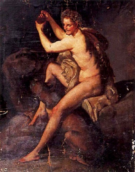 Esta pintura sobre Baco, ocasionalmente atribuida a Anton von Maron, parece pertenecer a un discípulo suyo: