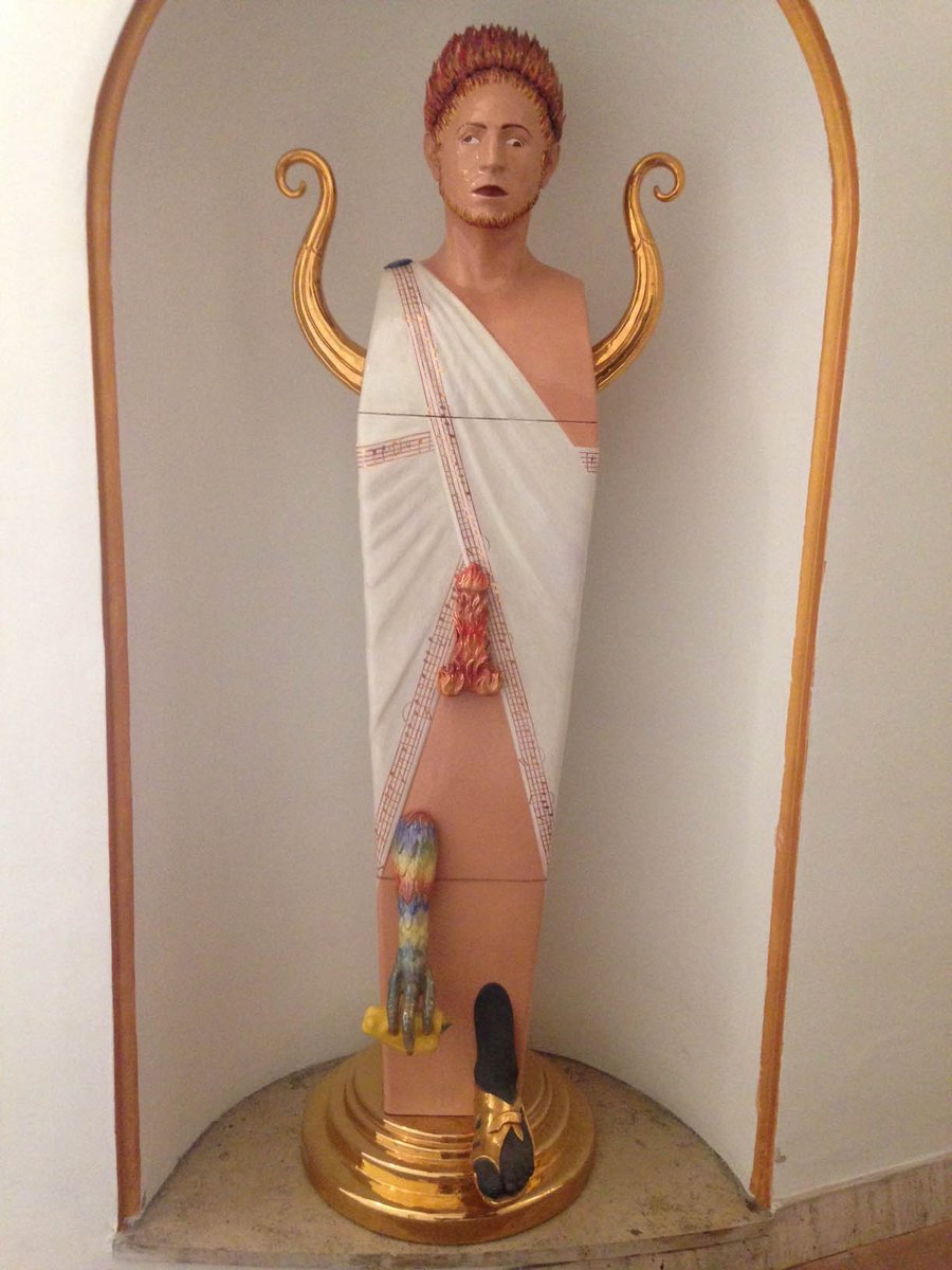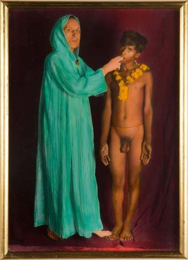 Luigi Ontani (Grizzana Morandi, Bolonia, Italia, 1943), multifacético, narcisista, creador de una obra cercana al kitsch, este artista conceptual no resulta fácil de catalogar. En la misma muestra una iconografía en la que se mezclan las representaciones religiosas de distintas creencias orientales y occidentales. Ontani creó una serie de obras fotográficas en las que su propio cuerpo sirvió para representar una serie de personajes históricos. También realizó performances de diversa índole.