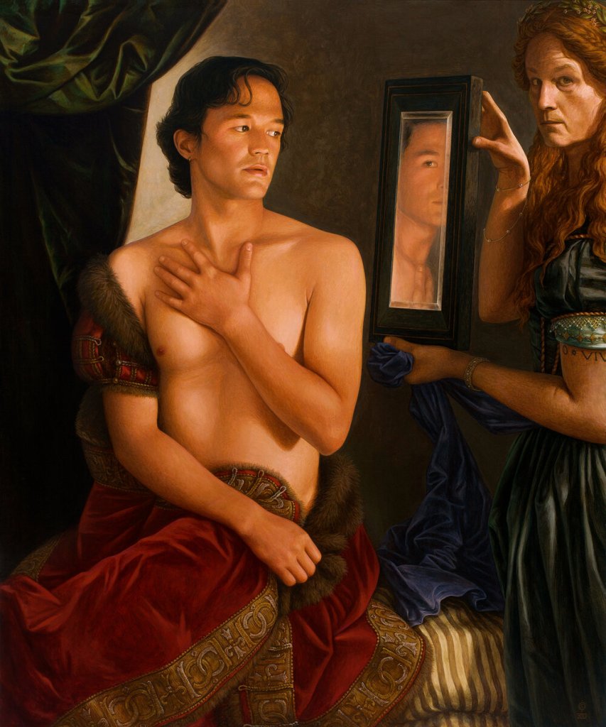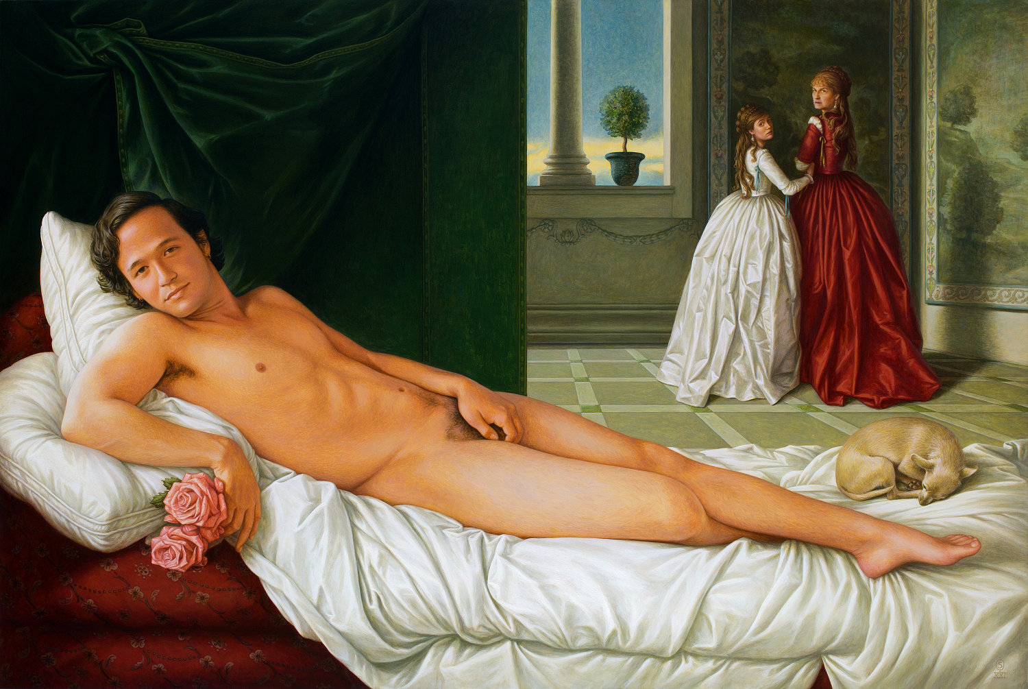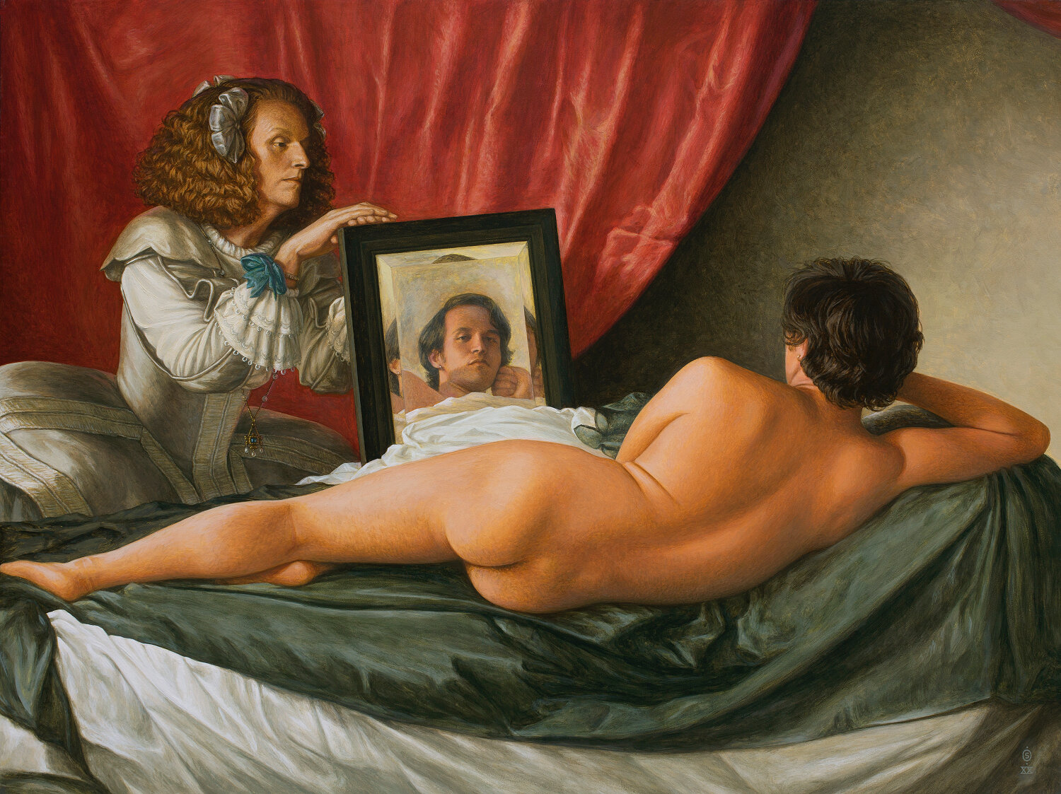Stephen O’Donnell (USA, 1958) es un pintor cuyas imágenes «realistas» subvierten los roles de género recreando obras clásicas, ampliamente conocidas, en las que invierte los géneros representados en las mismas. En éstas su autorretrato suele estar presente. El artista comenta: