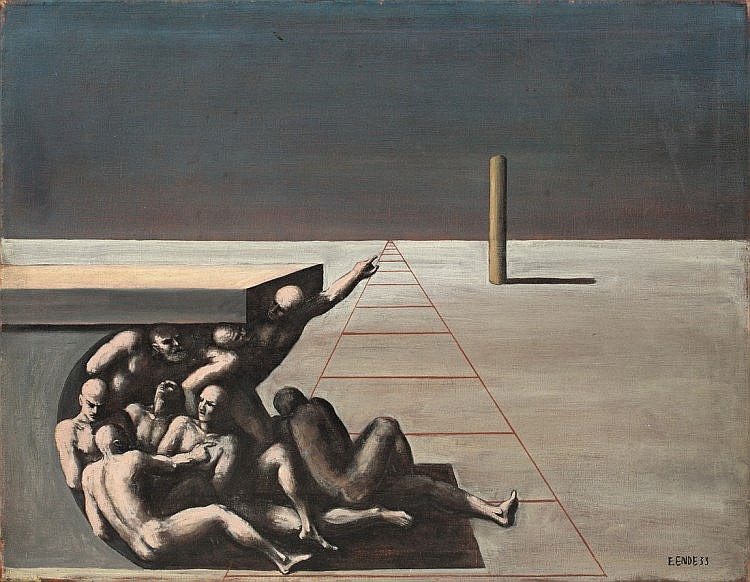 Edgard Karl Alfons Ende (Altona, Alemania, 1901-1965) está considerado uno de los mayores pintores surrealistas alemanes. Creador de una obra onírica y poética, fue fuente inspiración para su hijo el escritor Michael Ende no sólo en el argumento de su célebre «Historia Interminable», sino en colaboraciones en las que se unió texto literario y obra gráfica. En su página web leemos:
