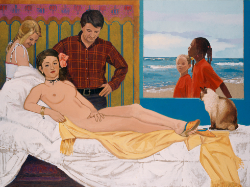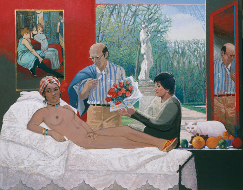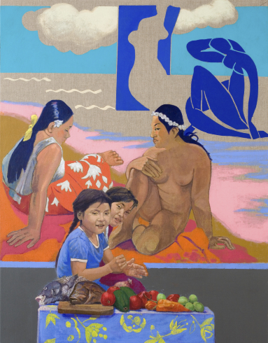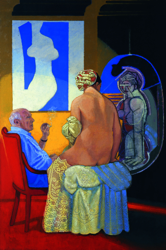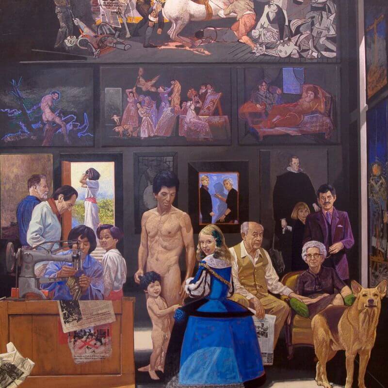 Herman Braun-Vega (Lima, Perú, 1933-2019) fue un gran creador que partió de una figuración próxima a la abstracción a otra inscribible en una figuración narrativa o neo-figuración. Su vida profesional fue parisina. En París tuvo oportunidad de conocer a los Grandes Maestros y entrar en contacto – curiosamente inspirado por Picasso – con la obra de Velázquez, Manet, o Ingres. Practica un apropiacionismo que hace dialogar distintas figuras pertenecientes a obras clásicas o posiciona las mismas en entornos físicos o humanos diferentes en un original sincretismo cultural.