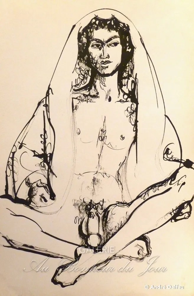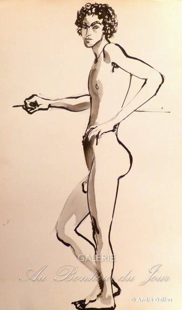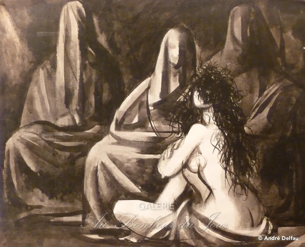 Aunque mucho más conocido como diseñador de modas asociado a firmas como Balmain o Balenciaga, André Delfau (París, Francia, 1914-2000) fue un artista con un recorrido mucho más amplio y sus pinturas, dibujos y grabados llegan a ser notables. El artista viajó frecuentemente a Marruecos y vivió en París y Chicago.