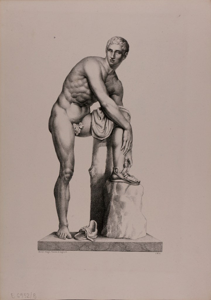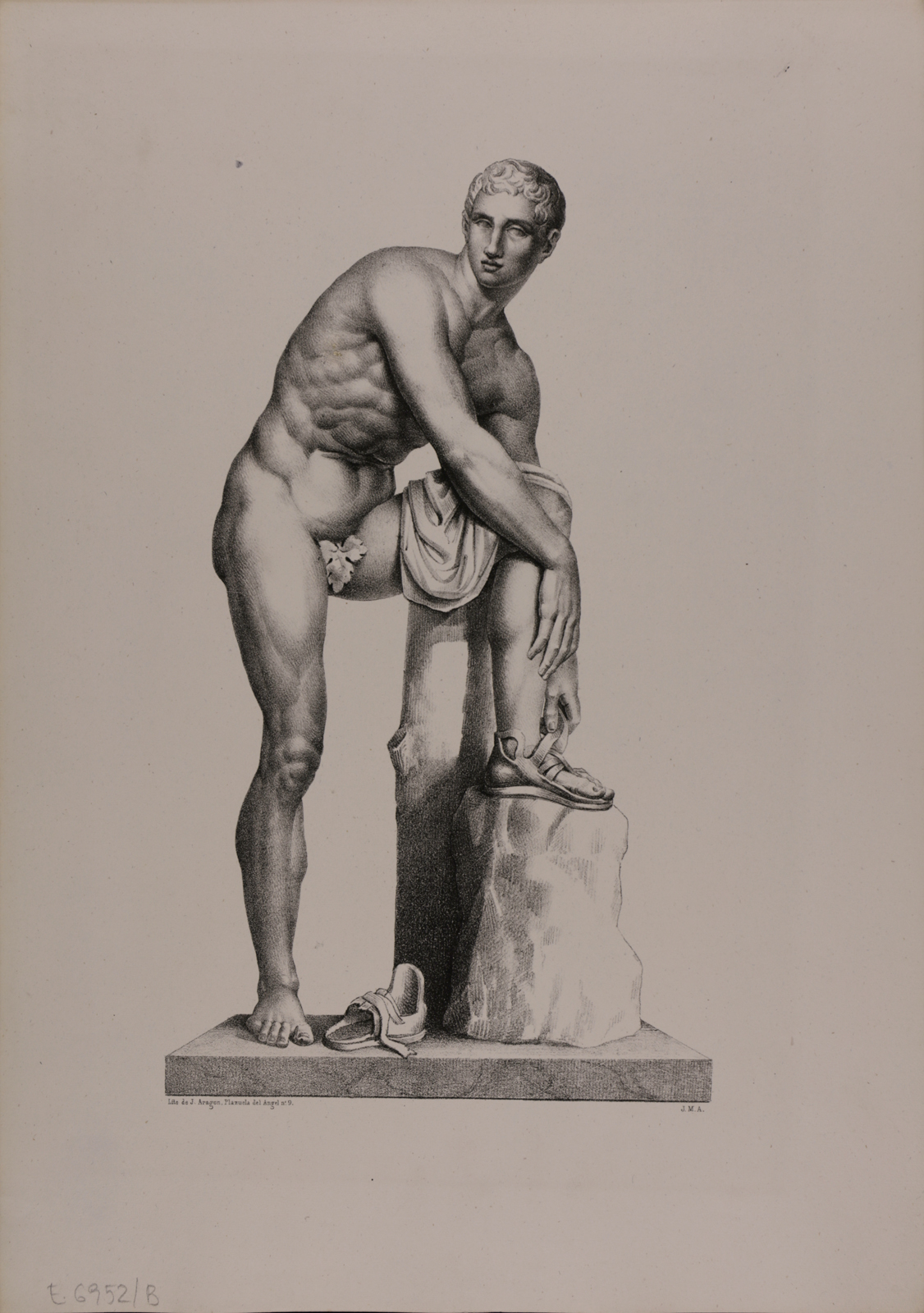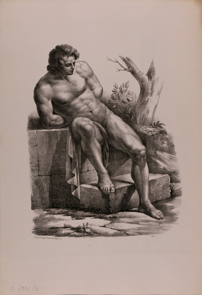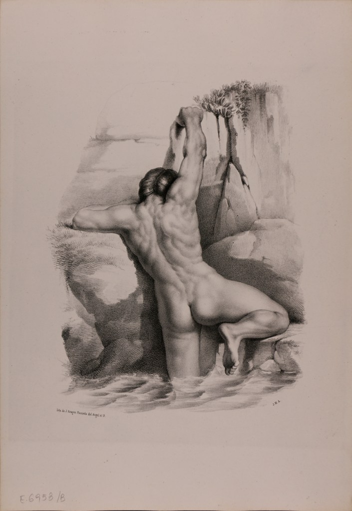 José María Avrial y Flores (Madrid, España, 1807-1891) fue un artista educado bajo las directrices neoclásicas de José de Madrazo y Fernando Branvilla, y que se especializó en el paisaje y en la pintura arquitectónica y arqueológica. Si observamos la selección de obra que recoge la Wikimedia Commons podríamos pensar que toda su producción artística se encuentra incluida en estos epígrafes. Sin embargo, la Real Academia de Bellas Artes de San Fernando permite encontrar, en sus colecciones, algunas litografías que nos aportan información sobre su labor de dibujante de desnudos. Un realismo neoclásico con elementos románticos.
