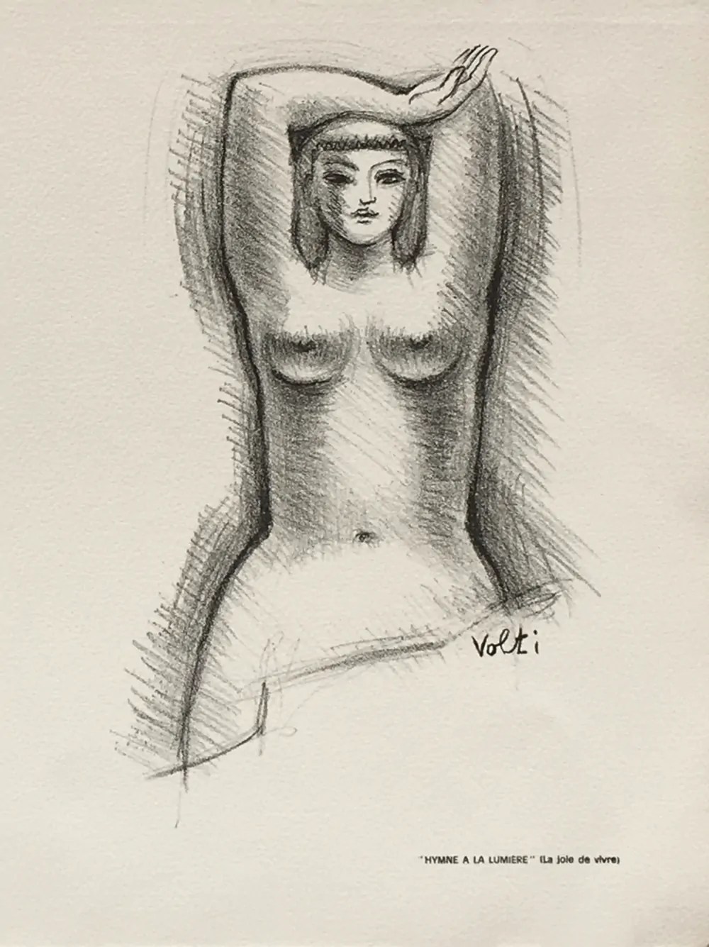 Antoniucci Volti (Albano Vercellese, Italia, 1915-1989) o Voltigero (su verdadero apellido) fue un dibujante y escultor francés, país que le concedió la nacionalidad pese a su nacimiento italiano. Estudió en la Escuela de Artes Decorativas de Niza y, posteriormente, en la Escuela de Bellas Artes de París con Jean Boucher. En la línea de Rodin, Bourdelle y Maillol, el artista creó figuras femeninas sensuales con formas redondeadas y amplias curvas.