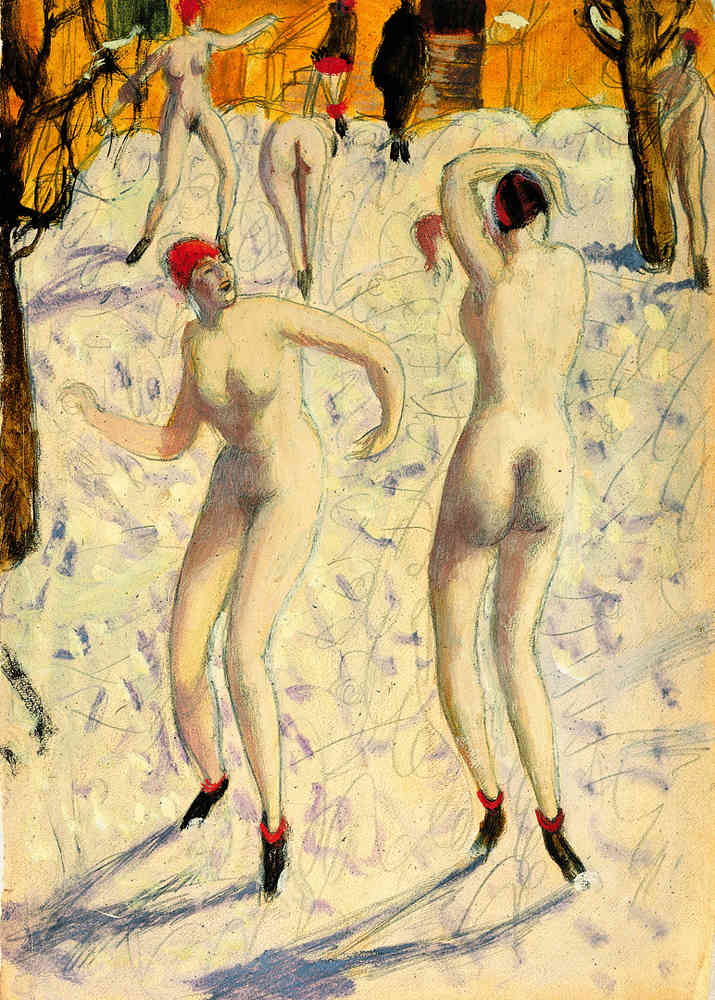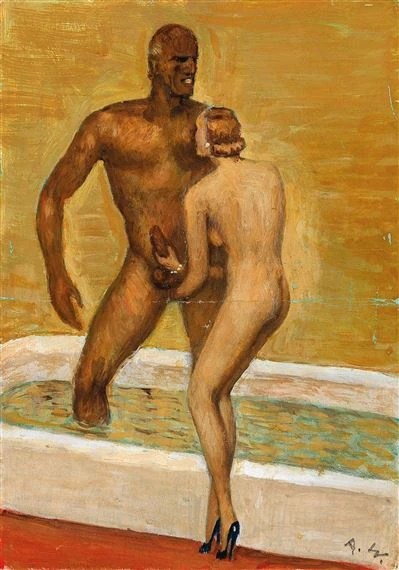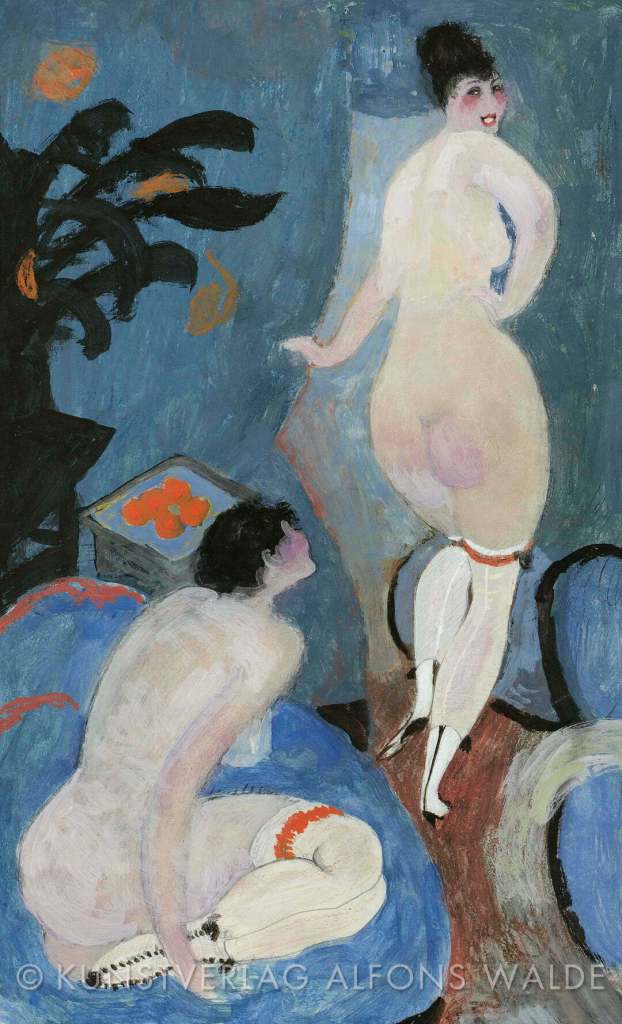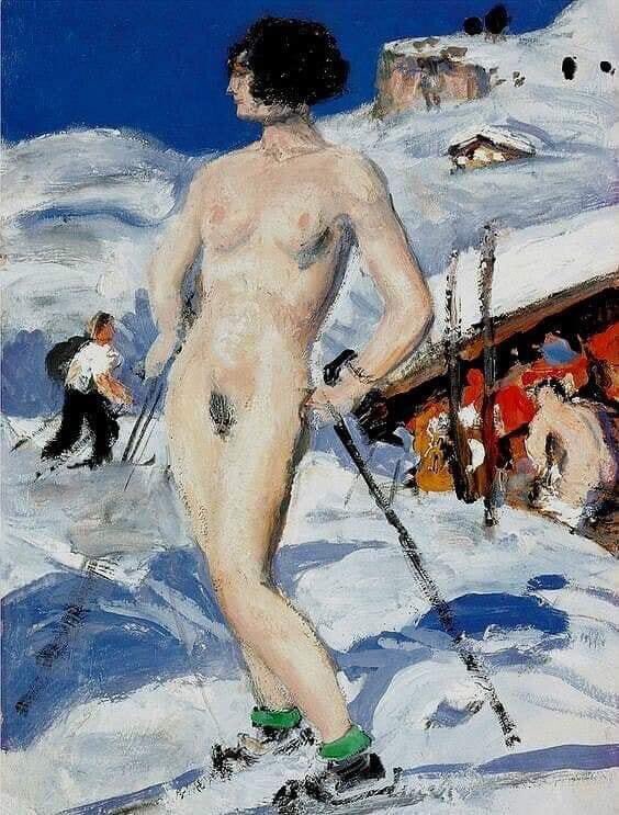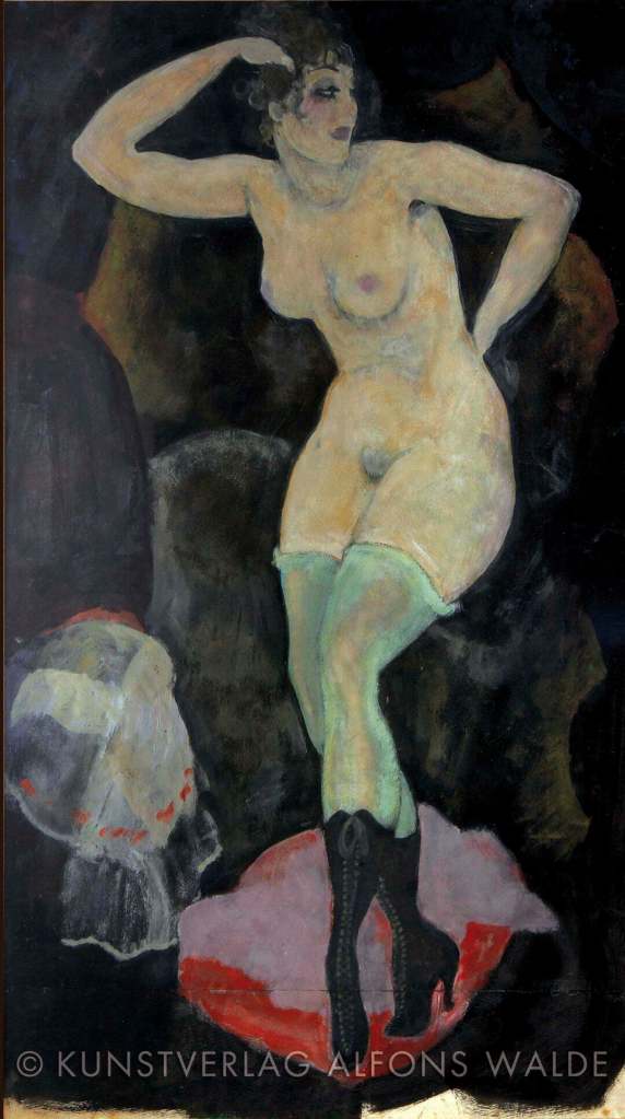 Alphons Walde (Oberndorf, Tirol, Austria, 1891-1958) fue un arquitecto y pintor famoso por sus escenas deportivas invernales en los Alpes. Su ingente obra costa de dibujos, grabados, óleos, acuarelas e, incluso, fotografías. Estas últimas, como veremos, le sirven de apoyo a sus pinturas de carácter expresionista. Son desnudos suelen tener un alto contenido erótico y son tan numerosos que me veo obligado a seleccionar, por motivos de espacio, sólo algunos de ellos.