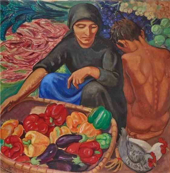 A Élisabeth Chaplin (Fontainebleau, Francia, 1890-1982) casi podemos considerarla una artista franco italiana puesto que su vida transcurrió entre estos dos países. En su obra destacan los paisajes, con un fuerte colorismo característico del grupo de los Nabis y muestra la influencia del fundador del grupo, Maurice Denis, pero también del clasicismo, aprendido durante sus abundantes visitas al Museo Uffizi.