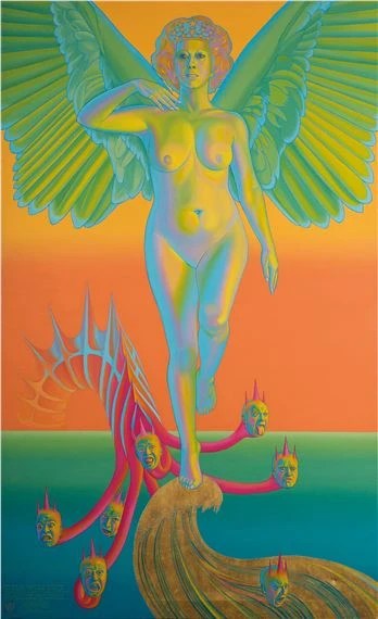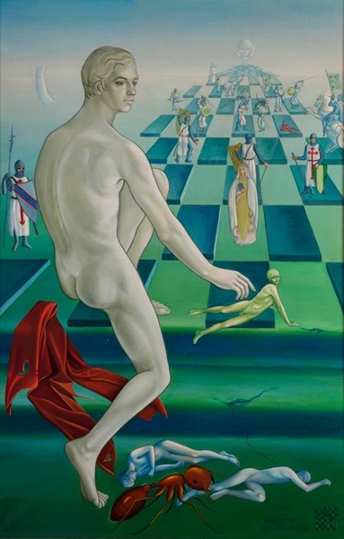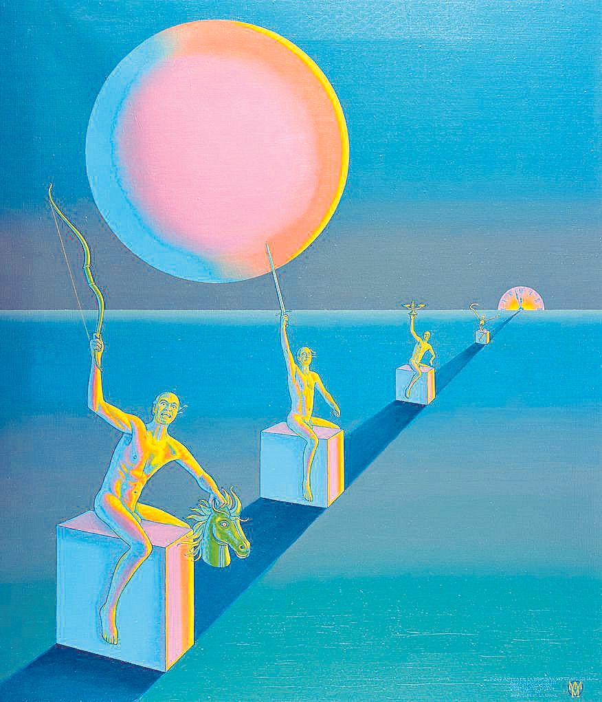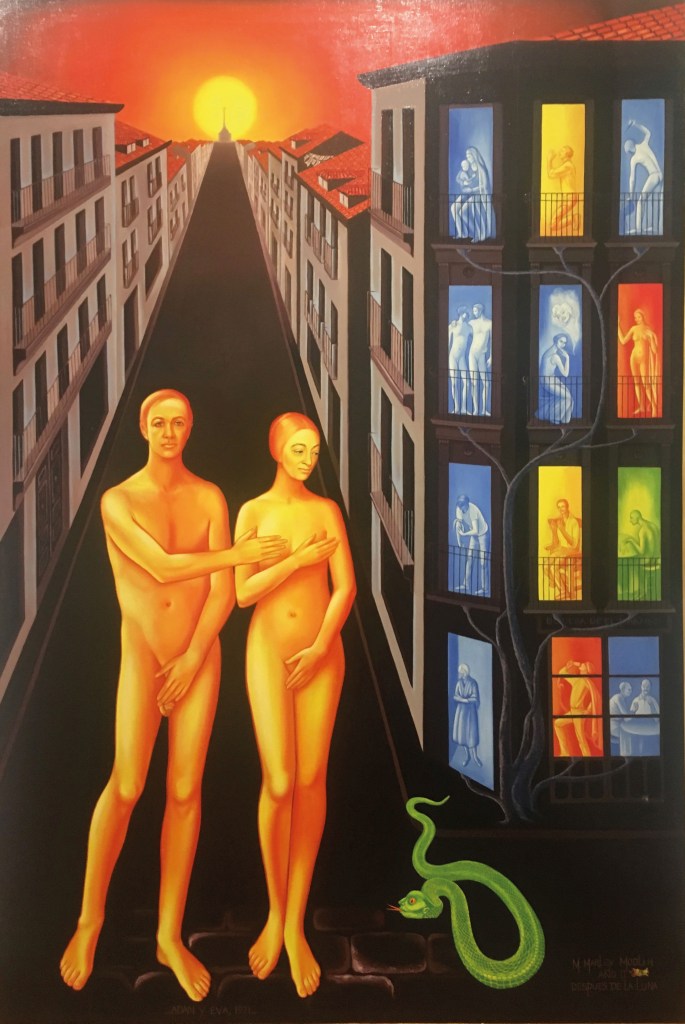 Margaret Marley Modlin (Robeson, Carolina del Norte, USA, 1927-1998) fue una artista que desarrollo su carrera en Madrid, ciudad en la que vivió – según se dice, de un modo extravagante – junto a su marido Elmer y su hijo. Los detalles de su vida nos han sido contados por el fotógrafo Paco Gómez en su obra «Los Modlin, una historia surgida de la basura» pero alejándonos de las anécdotas personales, quiero mostrarles una pintura, cuanto menos curiosa, interesante siempre, surrealista. En ella el dibujo precede al color.