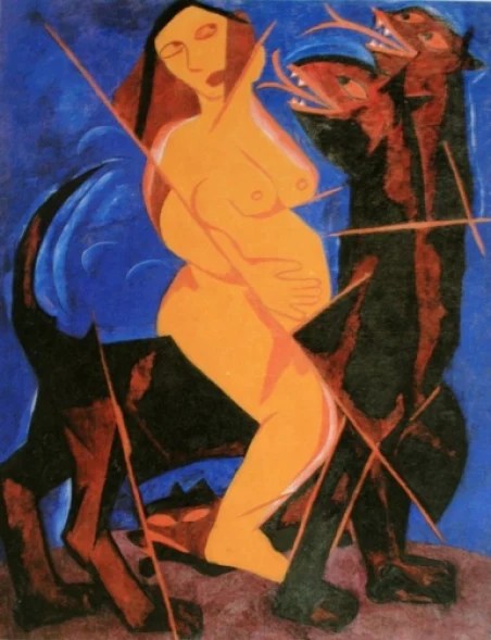 Natalia Goncharova (Arkhangelskoe, Rusia, 1881-1962), pintora asociada al cubismo y al futurismo, y una de la inspiradoras de la fusión de ambos estilos denominada rayonismo, fue una de las artistas más destacadas de la vanguardia pre-revolucionaria rusa. Junto a su labor pictórica, Goncharova se destacó como diseñadora de vestuarios y coreografías de varios ballets.